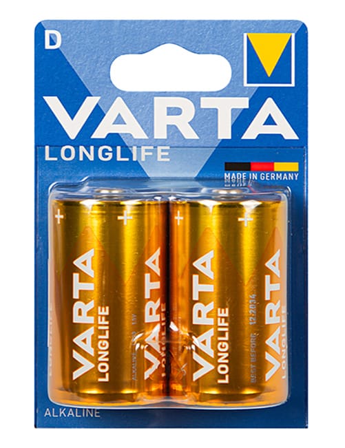 Baterie alkaliczne VARTA LR20 LONGLIFE 2sztuki - blister. Symbole: LR20, R20, 13A, MN1300, UM1, HP2. Napięcie 1.5V