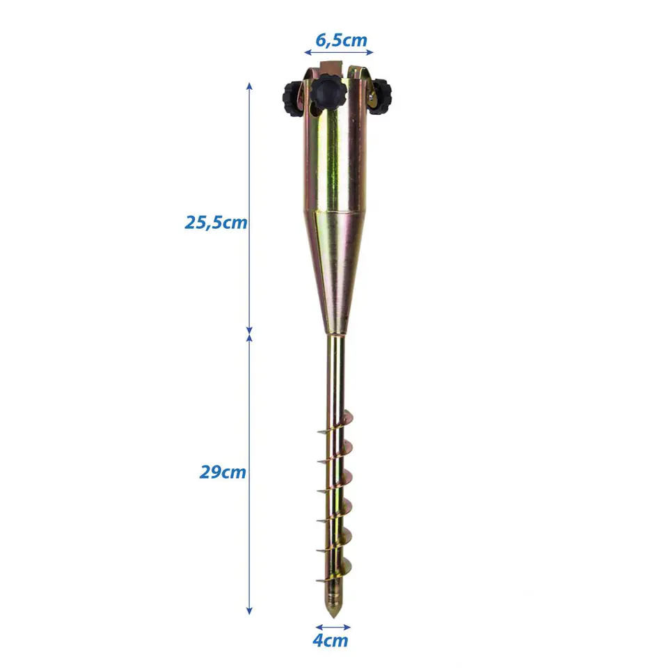 - Wymiary całkowite: 10 x 10 x 56 cm (szer. x gł. x wys.)Średnica śruby: 4 cmGrubość ścianki: 1,5 mmŚrednica wew./zew.: 6/6,5 cm Przeznaczenie: do parasola o średnicy uchwytu od ok. 25 do ok.55 mmIle cm uchwytu parasola wchodzi do mocowania: 24 cmDługość szpikulca (wbijana w podłoże): 29 cmDługość gwintu: 18,5 cmMateriał: Stal oxydowanaWaga netto: 1,270 kgWaga brutto: 1,350 kgOpakowanie: 8 x 8 x 57 cm (karton)W zestawie: baza, 3 x śruby, 3 x adaptery, instrukcja obsługi, uchwyt do wkręcaniaMarka: Enero Camp