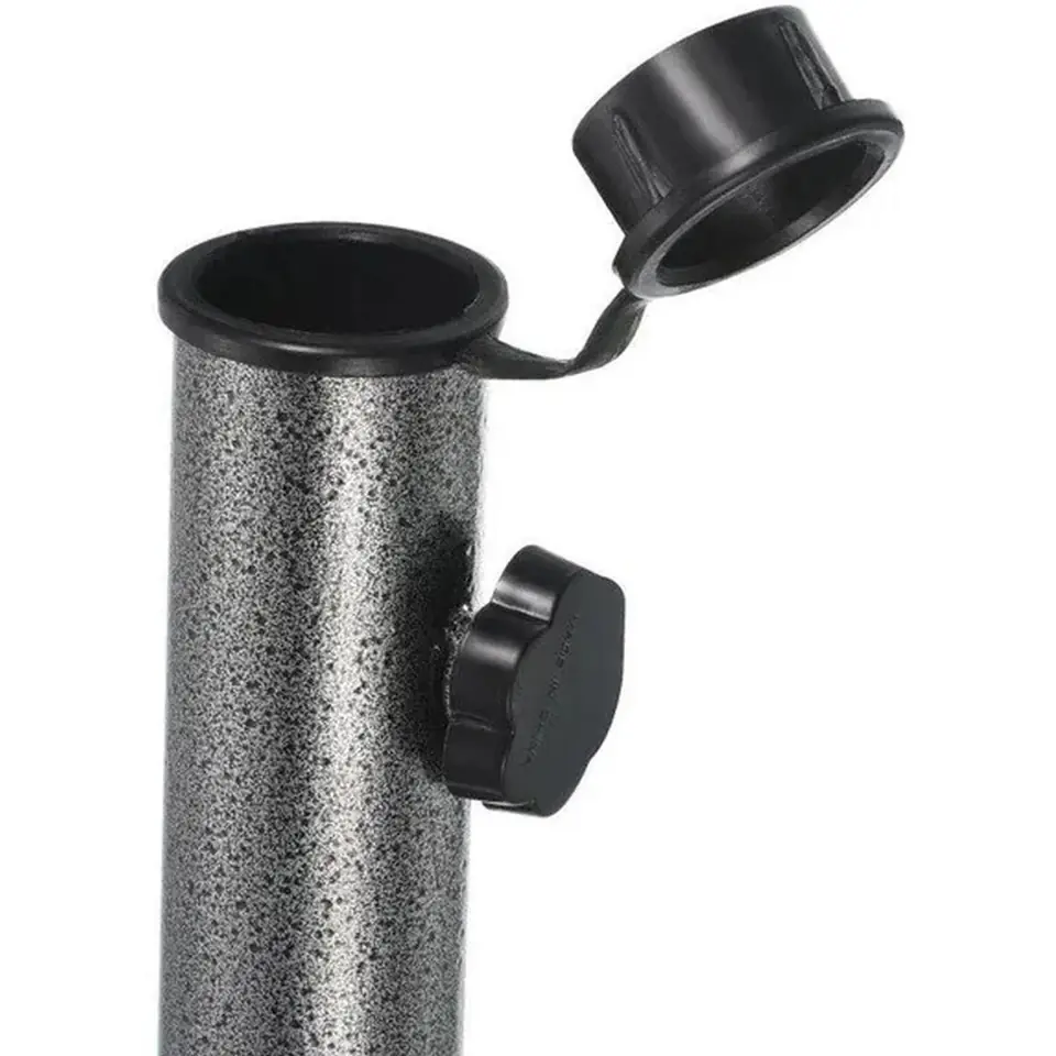 - pokrętło i adaptery pozwolą dopasować bazę do średnicy parasolamocna stalowa konstrukcja odporna na różne warunki atmosferyczneprzystosowany do okrągłego uchwytu parasoladwa szpikulce pozwolą mocno przytwierdzić parasol do ziemiłatwa w montażu i demontażu
