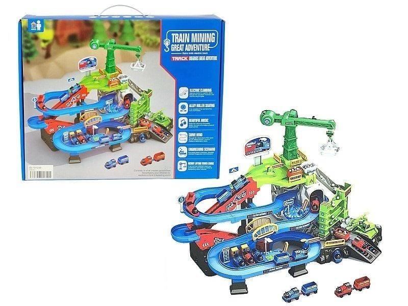 baza załadunkowa węgla, tor 3 poziomowy, dźwig, lokomotywy z wagonikami; 42x34x13cm, Box