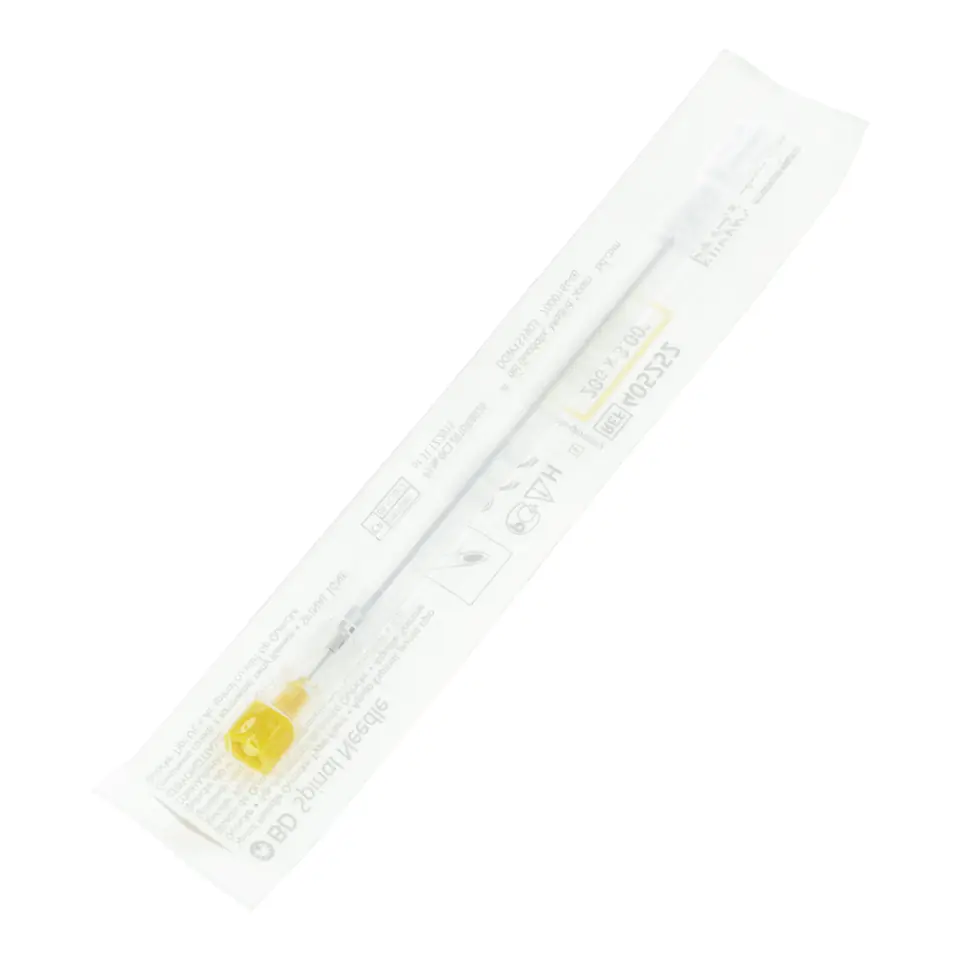 Igła do nakłuć lędźwiowych YALE Becton Dickinson przeznaczona jest do pobierania płynu mózgowo-rdzeniowego w celu diagnozowania, leczenia lub znieczulenia pacjenta. Cechy produktu: Igła wykonana ze stali nierdzewnej cienkościennej, nakładka zabezpieczająca wykonana jest z polipropylenu, nietoksyczne, niepirogenne, ostrze quinke (krótkie), właściwe dopasowanie igły i mandrynu zapobiega powstaniu efektu biopscji, przezroczysta osłonka igły pozwala na wizualizację płynu, nie zawiera silikonu, produkt jest sterylizowany tlenkiem etylenu, igły są oznaczone znakiem CE, złącze do igły jest stworzone i zgodne z oznaczeniami kolorów ISO. Dostępne warianty: SKAMEX BD 405257 - igła do nakłuć lędźwiowych YALE 0,5 x 90mm 25G, SKAMEX BD 405256 - igła do nakłuć lędźwiowych YALE 0,7 x 90mm 22G, SKAMEX BD 405252 - igła do nakłuć lędźwiowych YALE 0,9 x 76mm 20G SKAMEX BD 405248 - igła do nakłuć lędźwiowych YALE 1,2 x 90mm 18G, SKAMEX BD 405240 - igła do nakłuć lędźwiowych YALE 0,6 x 90mm 23G.