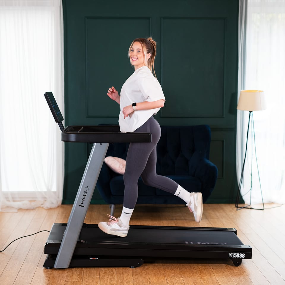 BE5838 BIEŻNIA ELEKTRYCZNA HMS Bieżnia BE5838 od HMS to wysokiej klasy sprzęt, który łączy mocne parametry techniczne z komfortem użytkowania. Zaprojektowana dla osób ceniących jakość i funkcjonalność. Oferuje regulację kąta nachylenia i szerokie możliwości treningowe, które pozwolą na skuteczne osiąganie sportowych celów w domowym zaciszu. Zaawansowany komputer i szeroki wybór programów Wyposażona w komputer z wyświetlaczem LED, bieżnia BE5838 oferuje 36 programów treningowych, 3 programy użytkownika oraz 1 manualny, dzięki czemu każdy znajdzie idealny program dla siebie. Wbudowana funkcja Body Fat (procent tkanki tłuszczowej organizmu) i pomiar czasu, odległości, prędkości, kalorii, pulsu wspomagają monitorowanie postępów i kontrolę parametrów zdrowotnych, a wygodne przyciski na uchwytach umożliwiają szybkie sterowanie prędkością i nachyleniem bez przerywania ćwiczeń. Komfort i bezpieczeństwo Posiada obszerną powierzchnię biegową o wymiarach 142 x 50 cm oraz zaawansowany system amortyzacji składający się z 6 wewnętrznych poduszek, który minimalizuje obciążenie stawów i zwiększa komfort podczas długotrwałych treningów. Funkcja Soft Drop ułatwia składanie i rozkładanie bieżni, a dzięki kółkom transportowym sprzęt można łatwo przemieszczać i przechowywać. Po złożeniu bieżnia zajmuje mniej przestrzeni, co czyni ją praktycznym rozwiązaniem. Nowoczesne udogodnienia Bieżnia BE5838 została wyposażona w Bluetooth do połączenia z aplikacjami treningowymi (Kinomap, Zwift, AnyRun) oraz wbudowane głośniki do odtwarzania muzyki. Słuchanie ulubionych piosenek czy podcastów podczas ćwiczeń od teraz stanie się niesamowicie proste! To innowacyjne rozwiązania, które pozwolą Ci cieszyć się każdą chwilą na bieżni. Wysoka jakość i niezawodność Model BE5838 oferuje maksymalne obciążenie 130 kg. Gwarantuje stabilność i trwałość nawet przy intensywnym użytkowaniu, co czyni tę bieżnię niezawodnym wyborem na lata. BE5838 to jeden z czołowych modeli w ofercie HMS, który dostarczy Ci profesjonalnych wrażeń z treningu w domowym zaciszu. Specyfikacja: Wymiary bieżni (rozłożona) Długość: 170 cm Szerokość: 79 cm Wysokość: 145 cm Wymiary bieżni (złożona) Długość: 118 cm Szerokość: 79 cm Wysokość: 145 cm Moc stała silnika: 3.0HP Moc szczytowa silnika: 4.5HP Zakres prędkości: 1-20 km/h Ilość poziomów nachylenia: 15 Maksymalny kąt nachylenia bieżni: 6,4° Automatyczna regulacja nachylenia Wymiary pasa bieżnego: 142 x 50 cm Komputer (pomiar) czas odległość prędkość kalorie puls tkanka tłuszczowa Komputer (wyposażenie dodatkowe) Bluetooth: tak Głośnik: tak Możliwość składania bieżni: tak Uchwyt uniwersalny: tak Panel multimedialny: tak Klucz bezpieczeństwa: tak Aplikacje: tak Kinomap Zwift AnyRun Ilość programów treningowych: 40 (36 wstępnie ustawionych) Maksymalna waga użytkownika: 130 kg Waga: 80 kg Uwagi: Nie przeznaczona do użytku komercyjnego Gwarancja 24 miesiące Importer: Abisal Sp. z o.o.| Polska | 41-807 Zabrze | ul. Pyskowicka 17 | e-mail: abisal@abisal.plAbisal Sp. z o.o. deklaruje, iż produkty sprzedawane przez firmę są bezpieczne i spełniają wymagania zawarte w Ustawie o ogólnym bezpieczeństwie produktów z dnia 12 grudnia 2003r. (Dz.U. z dnia 31 grudnia 2003r.)