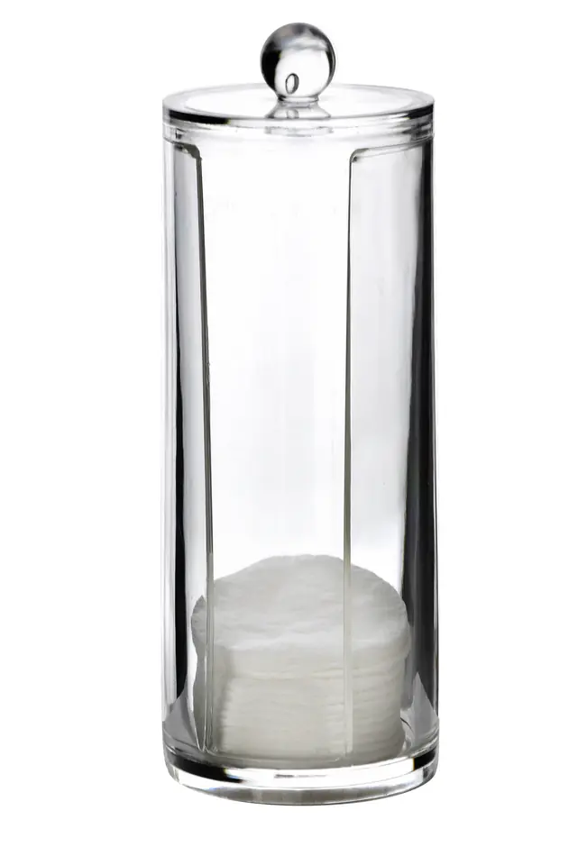 Pojemnik na waciki wykonany z akrylu.Posiada akrylową pokrywkę.Zapraszamy do odkrycia naszego eleganckiego pojemnika na waciki z kolekcji BEA, wykonanego z trwałego akrylu o transparentnym wykończeniu. Ten pojemnik nie tylko pomieści Twoje waciki w jednym miejscu, ale także dodaje stylu i elegancji do Twojej przestrzeni.Nasz pojemnik na waciki z kolekcji BEA to niezbędny element każdej przestrzeni łazienkowej lub sypialnianej. Dzięki transparentnemu designowi, możesz szybko zobaczyć, ile wacików pozostało, co czyni go zarówno praktycznym, jak i estetycznym dodatkiem.Uzupełnij swoją przestrzeń funkcjonalną i stylowym pojemnikiem na waciki z kolekcji BEA, który łączy w sobie elegancję z praktycznością, tworząc harmonijną całość w Twoim wnętrzu!wymiary: 7x19cmwaga: 0,220kg