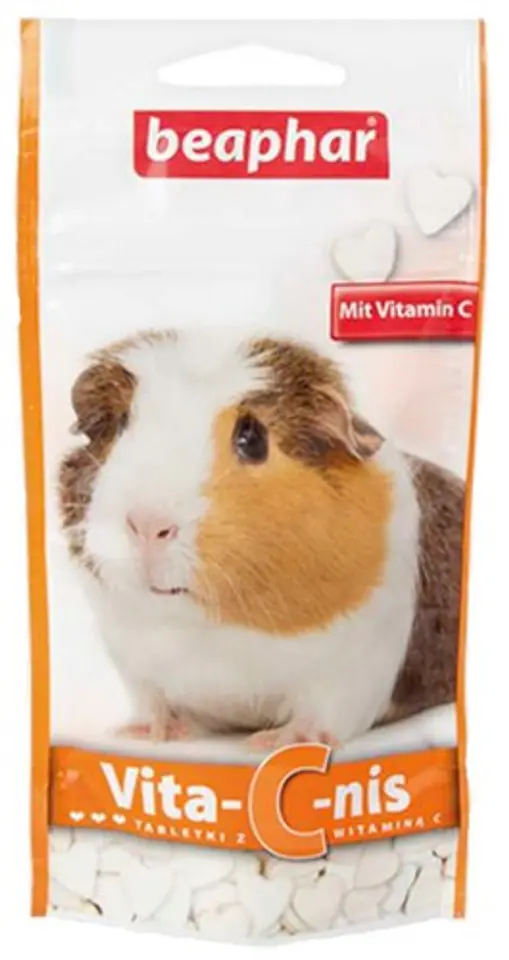 Beaphar Vita-C-nis posiadają wysoką koncentrację witaminy C w ilości przewidzianej dla świnki morskiej. Ze względu na to, iż świnki morskie nie syntetyzują witaminy C, należy dostarczać ją w codziennej diecie. Vita-C-nis są niezbędne do budowy kości, zdrowych zębów i tkanki łącznej u zwierząt.