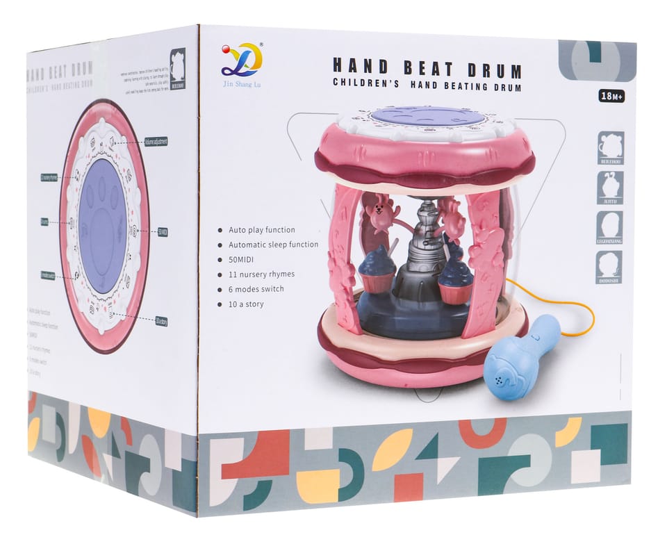 Bębenek z mikrofonem dla dzieci 18m+ Interaktywna multikostka + karuzela