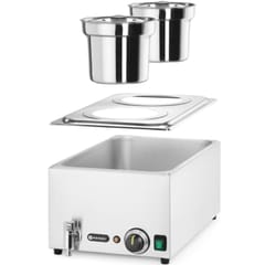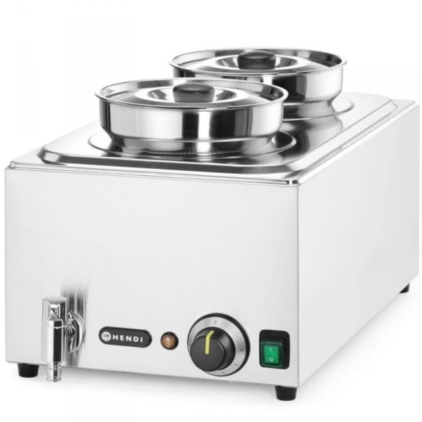 Kod produktu: 1030687Bemar Hendi Ranger to idealne, niezawodne rozwiązanie do profesjonalnych kuchni i bufetów samoobsługowych. Jego innowacyjny element grzewczy zapewnia 25% większą oszczędność energii w porównaniu do tradycyjnych rozwiązań oraz równomierne i szybkie rozprowadzanie temperatury. Obudowa i pojemnik na wodę wykonane ze stali nierdzewnej. W zestawie znajdują się dwa pojemniki 4 l z pokrywkami.Cechy produktu: