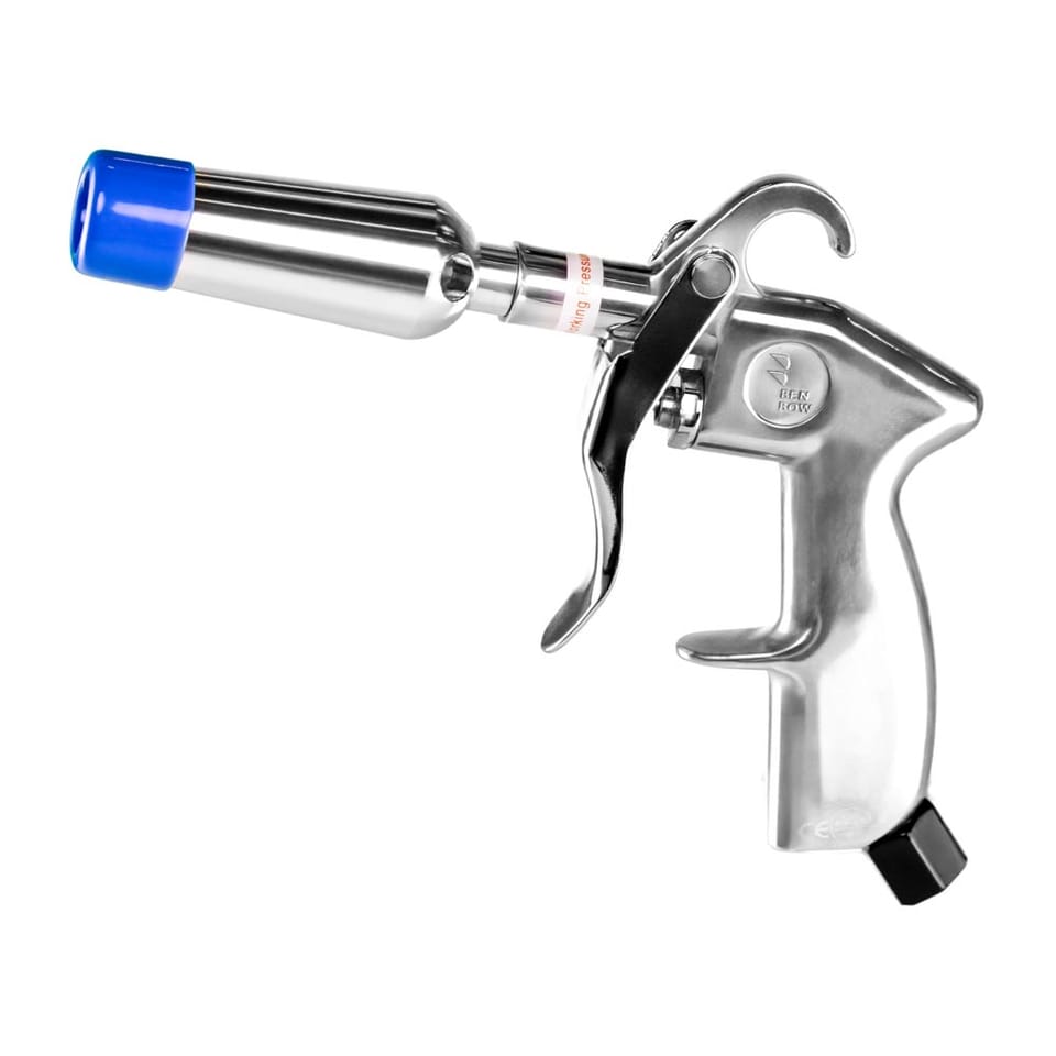 Benbow 000001 Classic – Pistolet do przedmuchiwaniaWytrzymały i wydajny pistolet do przedmuchiwania dla profesjonalistów i entuzjastów. Wyposażony w dyszę Venturi, zapewnia mocny strumień powietrza idealny do usuwania zanieczyszczeń z trudno dostępnych miejsc – w samochodzie, warsztacie czy na budowie. Aluminiowa konstrukcja gwarantuje trwałość, a wydajność do 1000 L/min przy ciśnieniu do 15 bar czyni go niezastąpionym narzędziem w pracy.