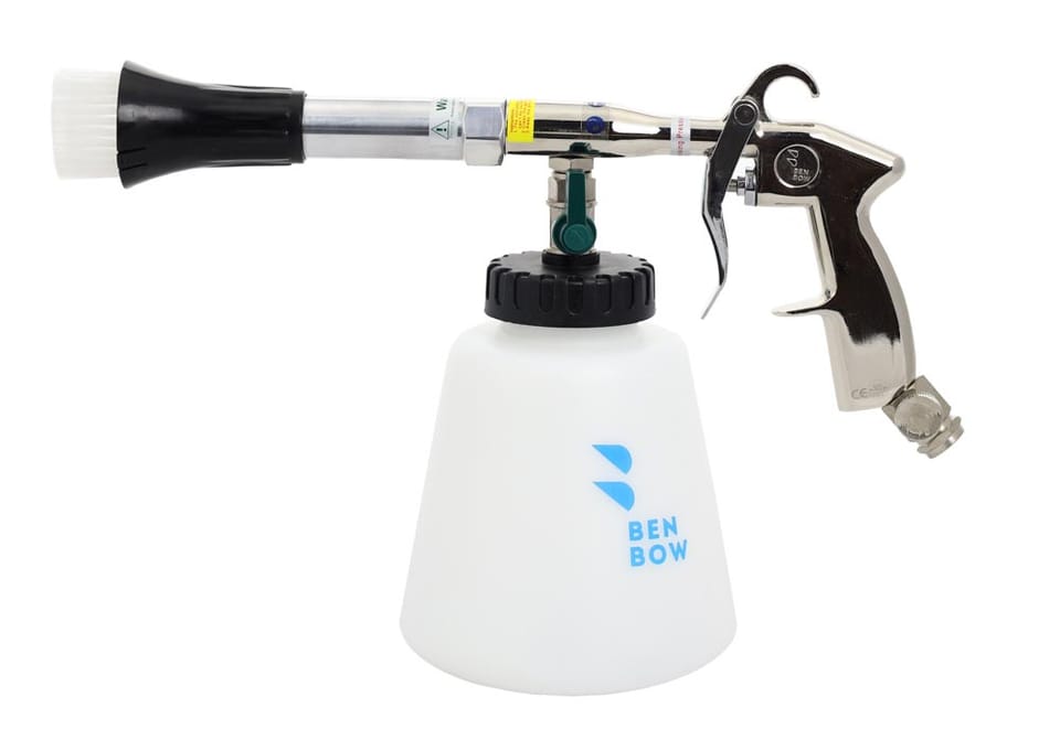 Profesjonalny pistolet czyszcząco-piorący z precyzyjnym mechanizmem obrotowym na łożysku, zapewniający lepsze rezultaty niż tradycyjne modele z wężykiem silikonowym. Przeznaczony do pracy ze sprężonym powietrzem i płynami czyszczącymi.