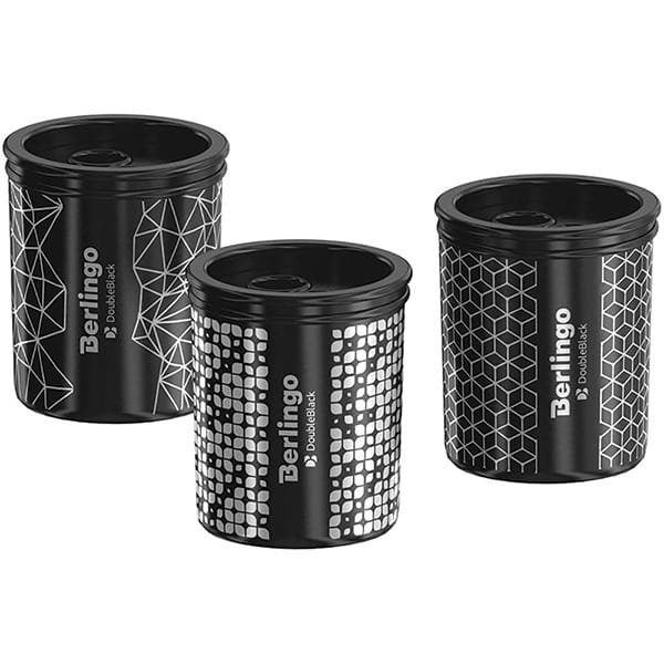 Berlingo, temperówka dwu-otworowa Double black, czarna, 12szt