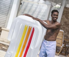 Bestway 43028 Dmuchany materac plażowy z oparciem i podłokietnikami Bialy 1.61m x 84cm