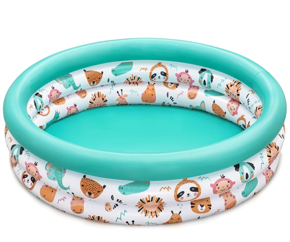 3-Pierścieniowy Dmuchany basen dziecięcy Bestway® Safari Pals™ 1,02 m x 25 cmPrzygotuj się na zabawę ze swoimi ulubionymi, uroczymi stworzeniami w basenie dla dzieci Bestway® Safari Pals™! Wyposażony w 3 równe pierścienie i uroczy zwierzęcy design, ten basen oferuje świetną zabawę dla dzieci w wieku 2+, które uwielbiają pluskać się przez cały dzień! Dzięki pojemności wody 101 L ten basen jest idealnym dodatkiem na każdy ciepły letni dzień. Szybka i łatwa konfiguracja oznacza, że Twoje dziecko może szybko przejść od zera do pluskania w mginieniu oka. Następnie, gdy dziecko zakończy zabawę na dzień, można go łatwo osuszyć, złożyć i przechowywać przez wiele lat. W chłodniejsze miesiące wystarczy dodać piłki do zabawy, a dzieci będą mogły cieszyć się całoroczną zabawą w pomieszczeniach. Każdy słoneczny dzień będzie nieco szczęśliwszy dzięki basenowi dla dzieci Bestway Safari Pals!Pojemność wody: 101 l (27 gal.)Słodki wzór ze zwierzętami3 równe pierścienieZawartość: 1 basen, łatka naprawczaOSTRZEŻENIE!NIGDY NIE ZOSTAWIAJ SWOJEGODZIECKA BEZ NADZORU – NIEBEZPIECZEŃSTWO UTONIĘCIA.