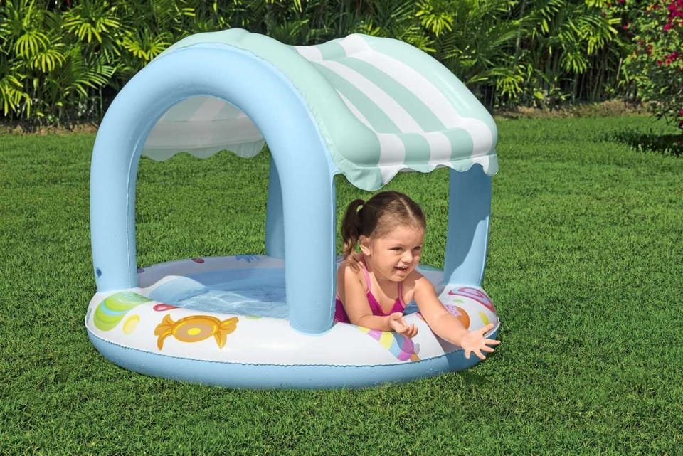 Bestway 52638 Basenik dmuchany z daszkiem i pompowanym dnem Cukierkowy Domek 1.04m x 84cm