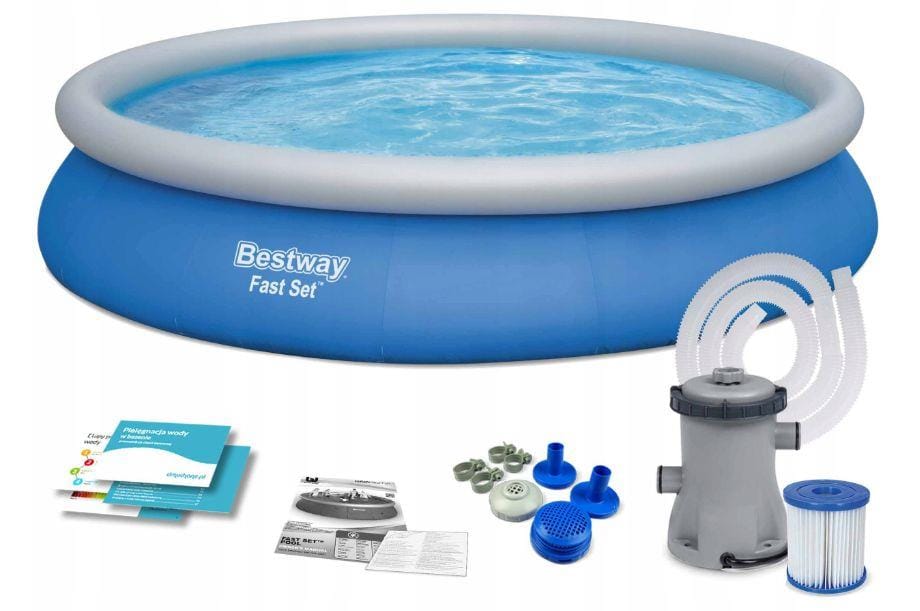 Dzięki zestawowi basenowemu Bestway® Fast Set™ będziesz gotowy na dzień basenu w mgnieniu oka! Proces konfiguracji, napełniania i podnoszenia jest prosty - wystarczy wybrać równą powierzchnię, nadmuchać górny pierścień, a basen będzie się unosił, gdy będzie wypełniany wodą. Wytrzymała niecka DuraPlus™ jest wykonana z bardzo wytrzymałego 3-warstwowego materiału, który jest wzmocniony w celu zwiększenia wytrzymałości i jest o 85% bardziej odporna na przebicie niż PVC. Atrakcyjna niecka ma również realistyczny rattanowy nadruk, który nada Twojemu ogródkowi elegancki wygląd i styl.Po zakończeniu sezonu przechowywanie jest szybkie i proste. Woda jest łatwo uwalniana przez zawór spustowy sterujący przepływem, a następnie basen można złożyć w celu kompaktowego przechowywania poza sezonem. Do zestawu dołączona jest również pompka filtrująca, która pomaga utrzymać wodę w czystości. Ten basen jest idealnym wyborem dla rodzin szukających szybkiego i łatwego w montażu basenu na swoim podwórku. Dzieci z przyjemnością spędzą letnie dni na pluskaniu się i zabawie w wodzie, a rodzice mogą również cieszyć się przyjemną i relaksującą kąpielą. Sezon nie będzie kompletny bez wygodnego basenu Fast Set firmy Bestway!Ściany boczne DuraPlus ™ odporne na przebicie i promieniowanie UV są odporne na ciężar, odkształcenia i ruchyPojemność wodna (80%): 9677 l (2556 gal.)Realistyczny nadruk z wikliny rattanowej na ścianach zewnętrznychŁatwy montaż bez narzędzi - gotowość do nalewania wody w 10 minutWybierz równą powierzchnię, napompuj górny pierścień, a basen podniesie się, gdy będzie wypełniany wodąWbudowany zawór spustowy z kontrolą przepływu podłącza się do węża ogrodowego w celu odprowadzenia wodyŁatwo rozłożyć do przechowywania poza sezonem220-240 V ~, Natężenie przepływu wody przez pompę 2,006 L, Przepływ wody w zintegrowanym systemie basenu 1,817 L, kompatybilny z wkładem 58094 (ⅠⅠ)Basen jest wyposażony w złącza zapewniające kompatybilność z pompami filtrującymi Flowclear™Zawartość: 1 basen, pompa filtrująca #58383Waga brutto: 22,7 kgŁatwe, szybkie i świetne rozmiary dla rodzin, baseny Bestway® Fast Set ™ oferują wygodną opcję na podwórko. Rodziny mogą wybierać spośród wielu wzorów i akcesoriów basenowych. Te baseny są bezproblemowe i wymagają tylko płaskiej powierzchni do ustawienia. Po prostu napompuj górny pierścień i będzie gotowy do wody w ciągu 10 minut! Basen Fast Set podniesie się, gdy zostanie wypełniony wodą, dzięki czemu konfiguracja jest szybka i łatwa.