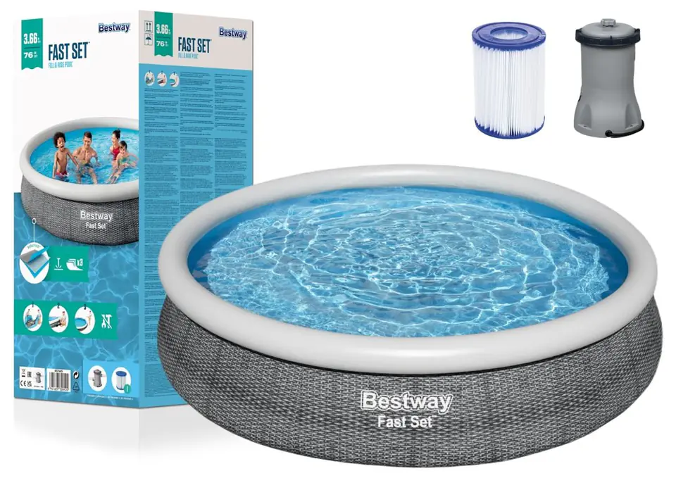 Bestway 57445 Basen rozporowy Fast Set z pompą filtracyjną Szary 3.66m x 76cm