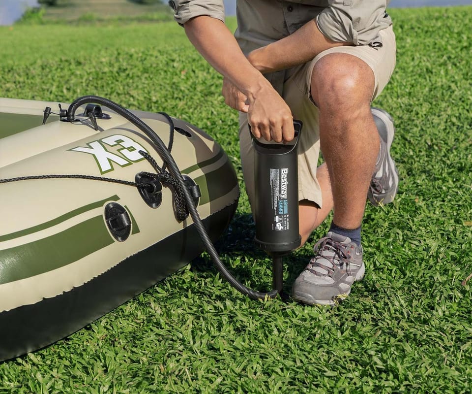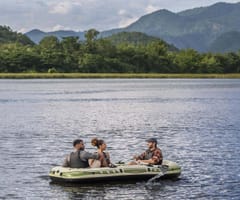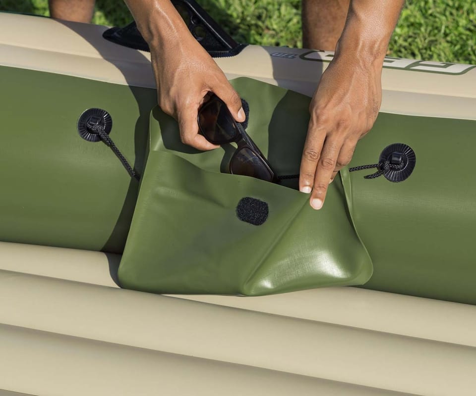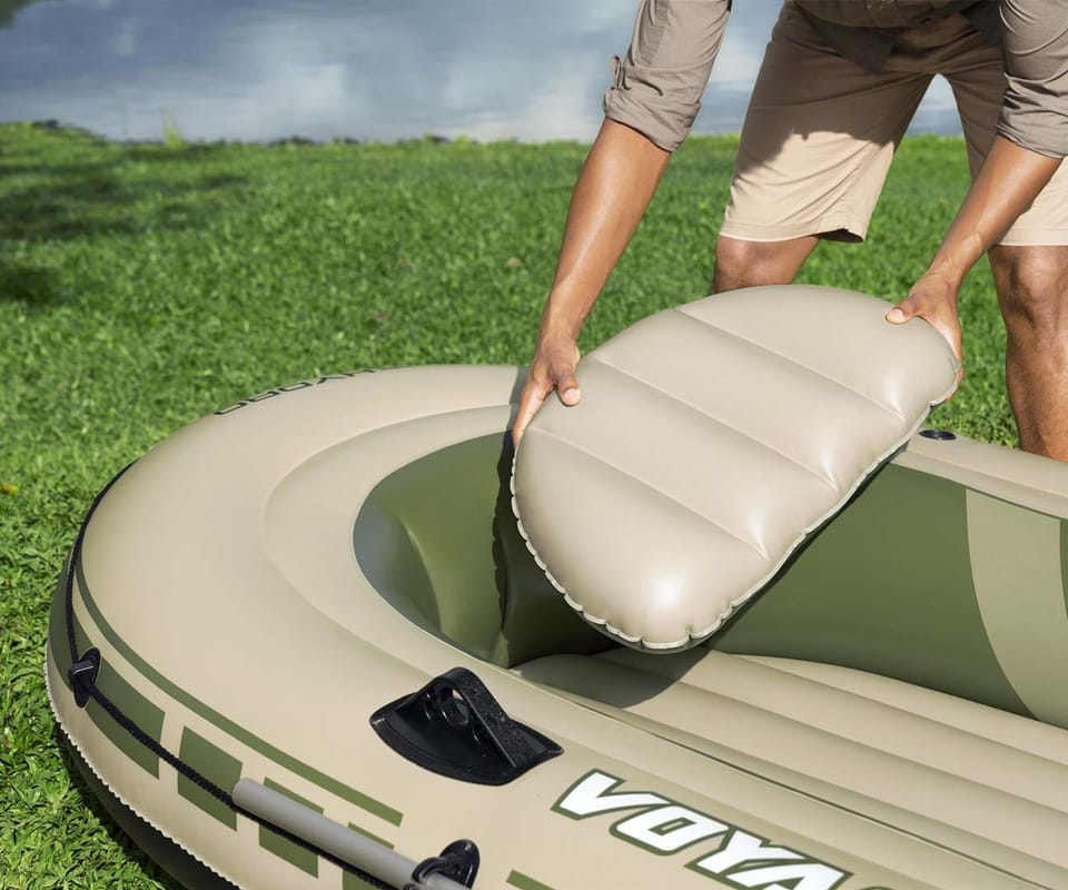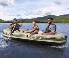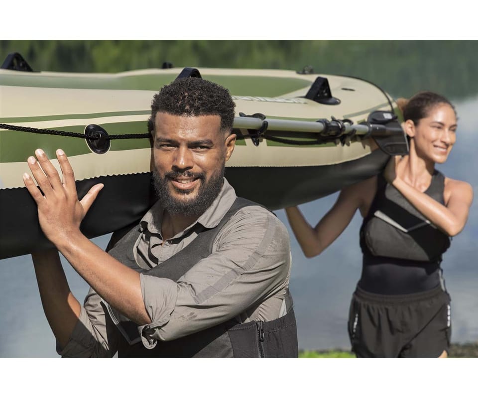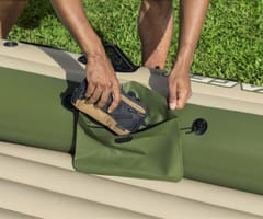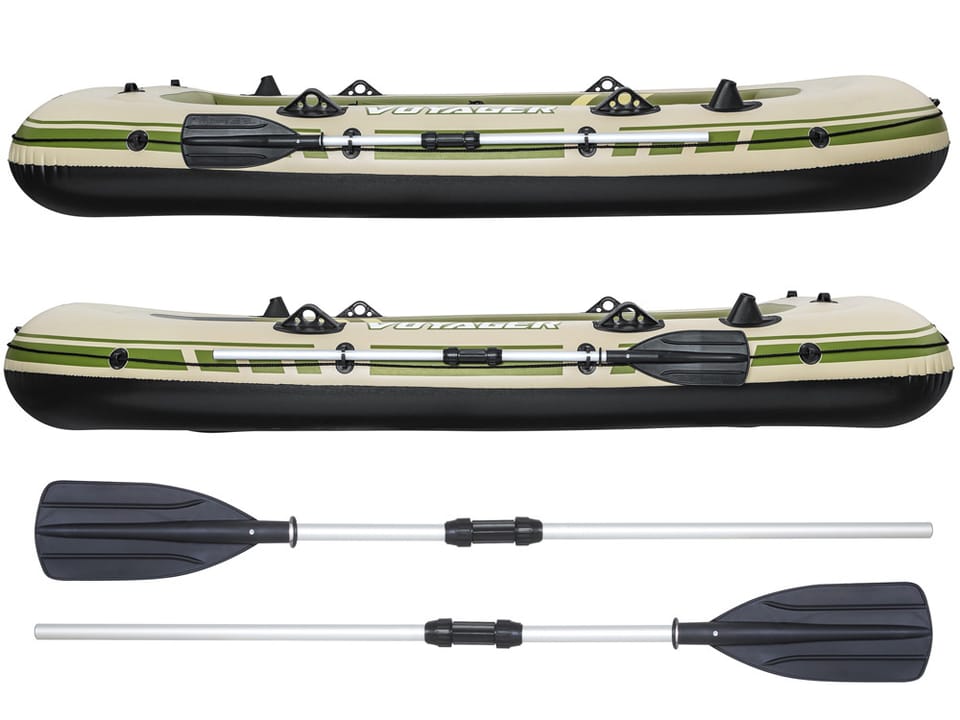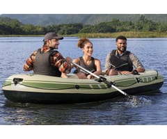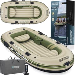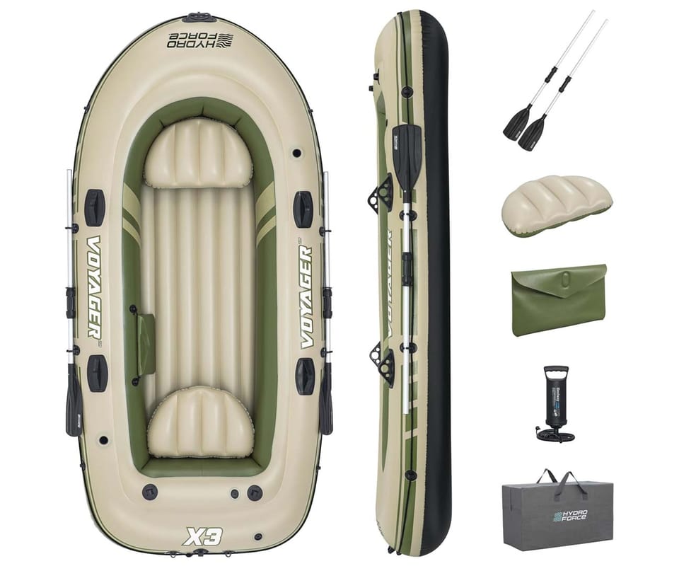 Pompowany 3-osobowy zestaw z tratwą Hydro Force® Voyager™ X3 2,94 mZbierz znajomych i przygotuj się do jazdy po bystrzach dzięki zestawowi z tratwą Hydro Force® Voyager™ X3! Idealny dla maksymalnie 3 osób dorosłych o całkowitej nośności 360 kg (794 Ibs), możesz liczyć na trwały materiał i wygodną konstrukcję, aby zapewnić bezpieczną i przyjemną jazdę!Trwały i niezawodny materiał:Łatwo poczuć się pewnie, gdy uderzasz w wodę i poruszasz się po bystrzach dzięki Hydro-Force Voyager X3 który jesy zbudowany z wytrzymałego materiałowi Inflata-Shield™. Ten specjalny materiał jest odporny na przebicie i ogranicza rozciąganie, zapewniając lepszą stabilność i zatrzymywanie powietrza. Ty i Twoi kumple od przygód będziecie w stanie wytrzymać uderzenia i zachlapania podczas podróży dzięki materiałowi, który sprosta żywiołom. Wiosła i dodatki:Pompowany kajak zawiera również wbudowane uchwyty na wędki oraz solidne dulki, dzięki czemu z łatwością możesz pływać i łowić ryby. Poprowadź kajak wzdłuż wody za pomocą pary dołączonych wioseł i użyj zapięć do wioseł, aby utrzymać je na miejscu. Ponadto Voyager X3 zawiera przelotki do mocowania silnika o mocy 1,5 HP (1,1 kW), jeśli zdecydujesz, że Twoja jednostka pływająca potrzebuje dodatkowej prędkości (silnik i mocowanie nie są dołączone do zestawu). Wygodna i kompaktowa konstrukcja:Dzięki 2 pompowanym siedzeniom i pompowanej podłodze możesz cieszyć się dodatkowym poziomem komfortu, aby pływanie było przyjemniejsze. Kiedy skończysz użytkowanie, wysusz kajak, złóż go i z łatwością schowaj Hydro-Force Voyager X3 do torby w oczekiwaniu na następną przygodę!Materiał Inflata-Shield™ odporny na przebicie oraz ograniczający rozciąganie, zapewniając stabilność i zatrzymywanie powietrzaTyp kategorii: WędkarstwoPrzestronna konstrukcja o zwiększonej stabilności i dodatkowych funkcjach wędkarskichZawiera przelotki do montażu silnika, do użytku z uchwytem o mocy 1,5 KM (1,1 kW) (silnik i uchwyt nie wchodzą w skład zestawu)Twarda i sztywna nadmuchiwana podłoga2 wygodne, dmuchane siedzeniaSolidne dulkiUchwyty na wiosłaWbudowane uchwyty na wędkiOwinięta lina do chwytania z wbudowanymi przelotkami ułatwia trzymanie się i ponowne wejście do pontonu1 wytrzymały uchwyt do przenoszenia1 para wioseł aluminiowych o długości 145 cm (57 cali).Pompka ręczna o podwójnym działaniuTorba transportowa ułatwiająca transport i przechowywanieEtui na sprzęt do przechowywania niezbędnych rzeczyZawory szybkiego uwalnianiaZawartość: 1 ponton, 1 para wioseł, 1 pompka ręczna, 1 torba na sprzęt, 1 torba transportowa, łatka naprawczaOSTRZEŻENIE!NIE PRZEKRACZAJ ZALECANEJ MAKSYMALNEJ LICZBY OSÓB. NIGDY NIE PRZEKRACZAJ MAKSYMALNEGO DOPUSZCZALNEGO OBCIĄŻENIA. UWAŻAJ NA PRZYBRZEŻNE WIATRY I PRĄDY WODNE. ZAWSZE ZAKŁADAJ KAMIZELKĘ RATUNKOWĄ! PRZECZYTAJ ZAŁĄCZONĄ INSTRUKCJĘ OBSŁUGI I PRZESTRZEGAJ ZALECEŃ W NIEJ ZAWARTYCH.