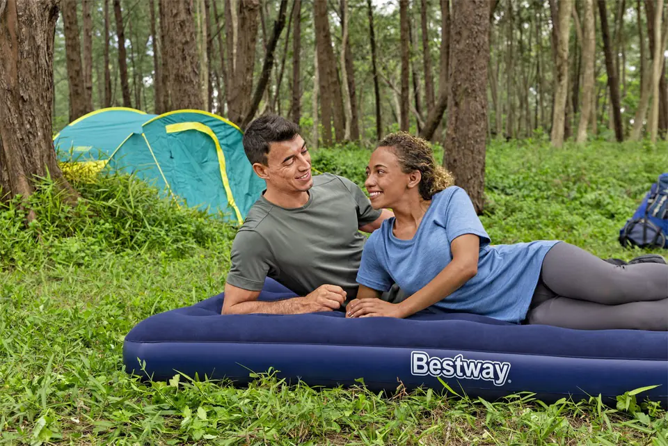 Materac powietrzny Bestway® jest przeznaczony zarówno do użytku wewnątrz, jak i na zewnątrz, co czyni go idealnym rozwiązaniem dla każdego użytkownika! To podwójne łóżko Jr. jest świetnym towarzyszem na kempingu lub miłym dodatkiem do wolnej sypialni. Szybko się nadmuchuje i opróżnia, dzięki czemu jest równie wygodne, co komfortowe.Trwała konstrukcja:Ten materac powietrzny zapewnia wygodę i wspaniały sen. Aksamitna powierzchnia jest miękka i ciepła. Wewnętrzne zwoje przypominają w dotyku standardowy materac, co jest idealne dla osób aktywnych. Spirale te zapewniają wyprofilowane podparcie wokół użytkownika i szybko reagują na ruchy ciała.Prosta konfiguracja: