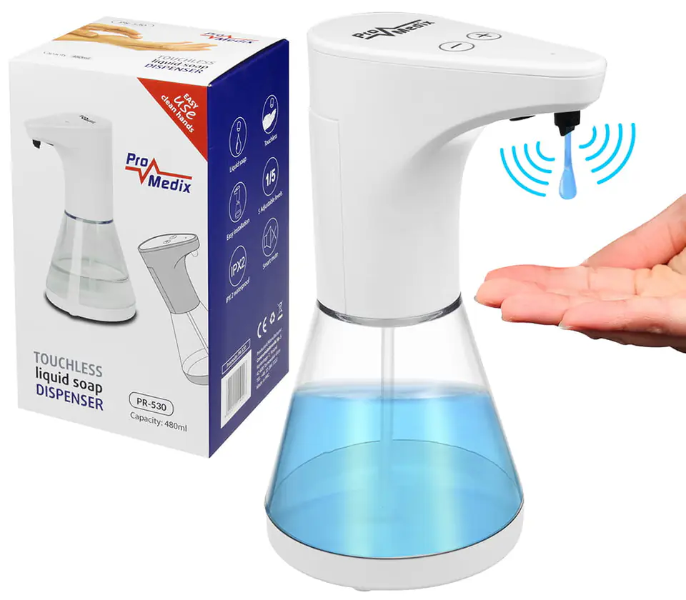 Automatyczny dozownik pojemnik dyspenser do płynnych mydeł, płynów dezynfekujących oraz żeli Promedix PR-530 480ml na 4 baterie AA