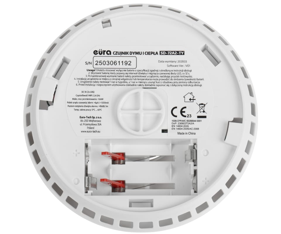 BEZPRZEWODOWA CZUJKA DYMU I CIEPŁA SD-72A2-TY Wi-Fi, Tuya Smart EURA