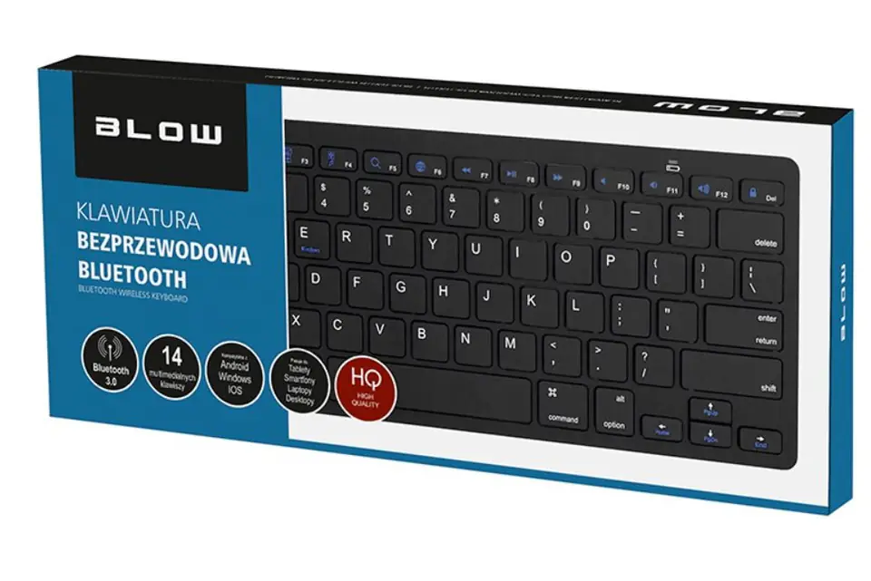 Klawiatura bezprzewodowa BLOW BLUETOOTH jest wygodnym i poręcznym narzędziem do wprowadzania większej ilości danych do urządzeń mobilnych takich jak smartfony lub tablety. Za jej pomocą szybciej i sprawniej napiszemy e-maila lub uaktualnimy listę kontaktów.