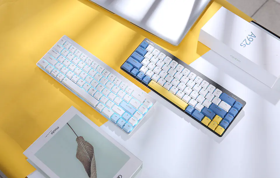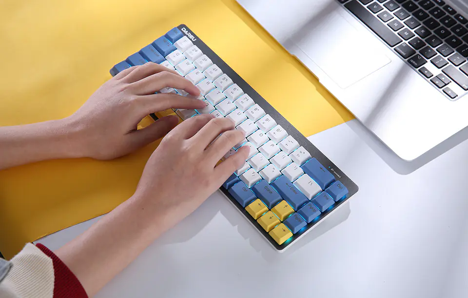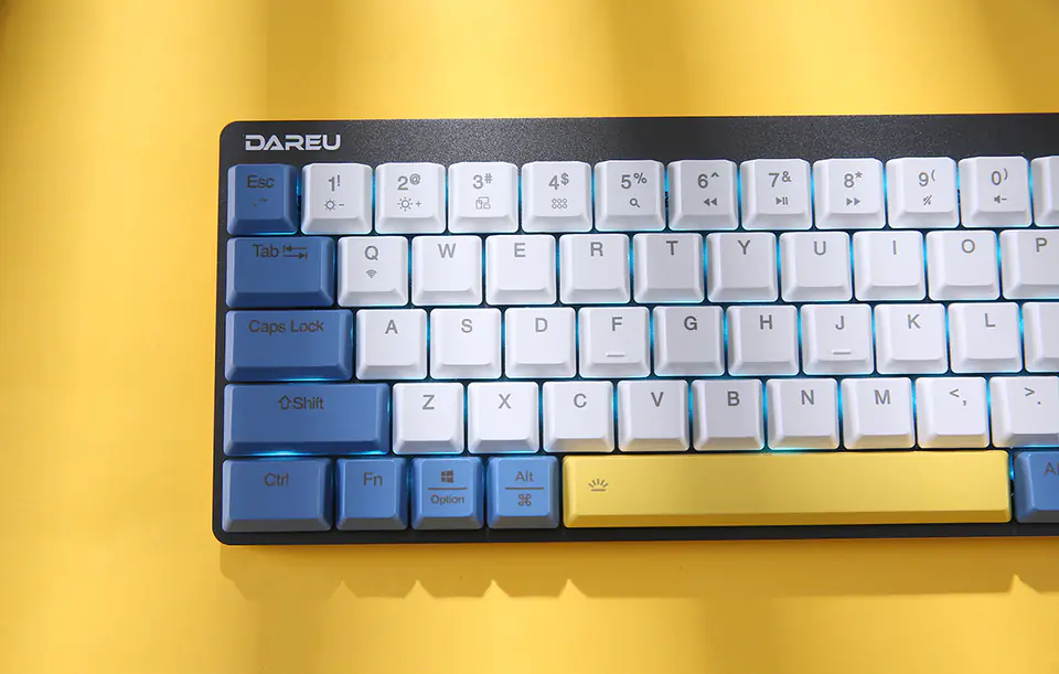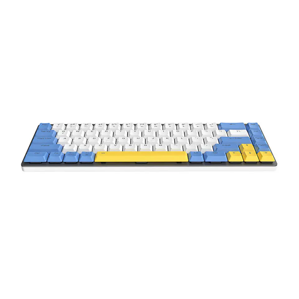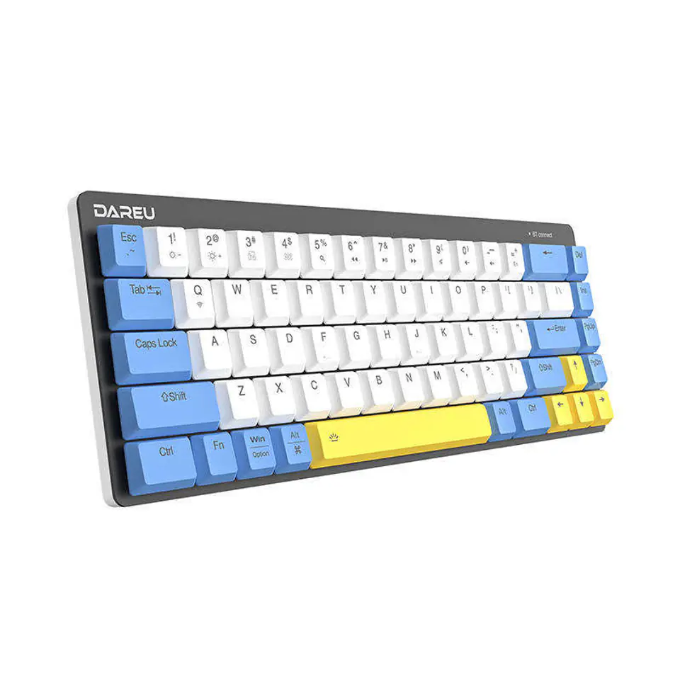 MarkaDareuKolorBiało-niebiesko-żółtaModelEK868TypMechanicznaLiczba klawiszy68MateriałAluminium + PBTPołączeniePrzewodowe / BluetoothWersja Bluetooth5.1Zasięgdo 8 mŻywotność klawiszyDo 50 milionów kliknięćPrzełącznikiDareu RedPodświetlenieIce BluePojemność akumulatora2000 mAhWymiary310 x 111 x 32,7 mmWagaOk. 435 g (bez kabla)KompatybilnośćWindows/MacInneRegulacja jasności podświetlenia, 12 klawiszy funkcyjnych, blokada WIN, anti-ghosting