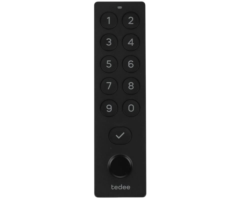 TEDEE-KEYBOARD/2.0B to klawiatura marki Tedee w kolorze czarnym, która umożliwia wygodne odblokowywanie zamka kodem bez użycia kluczy. Obsługa wielu użytkowników, podświetlane przyciski i łatwa integracja z zamkami elektronicznymi tedee zapewniają intuicyjne i szybkie sterowanie dostępem do domu lub biura. Montaż bezprzewodowy zasilany bateriami upraszcza instalację w różnych lokalizacjach.