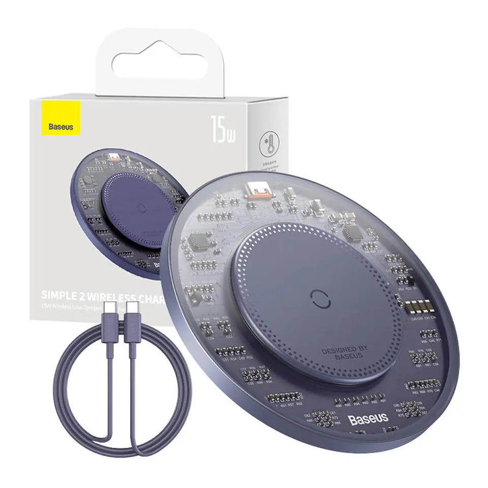 Bezprzewodowa ładowarka indukcyjna Baseus Simple 2, 15W z kablem USB-C do USB-C (fioletowa)