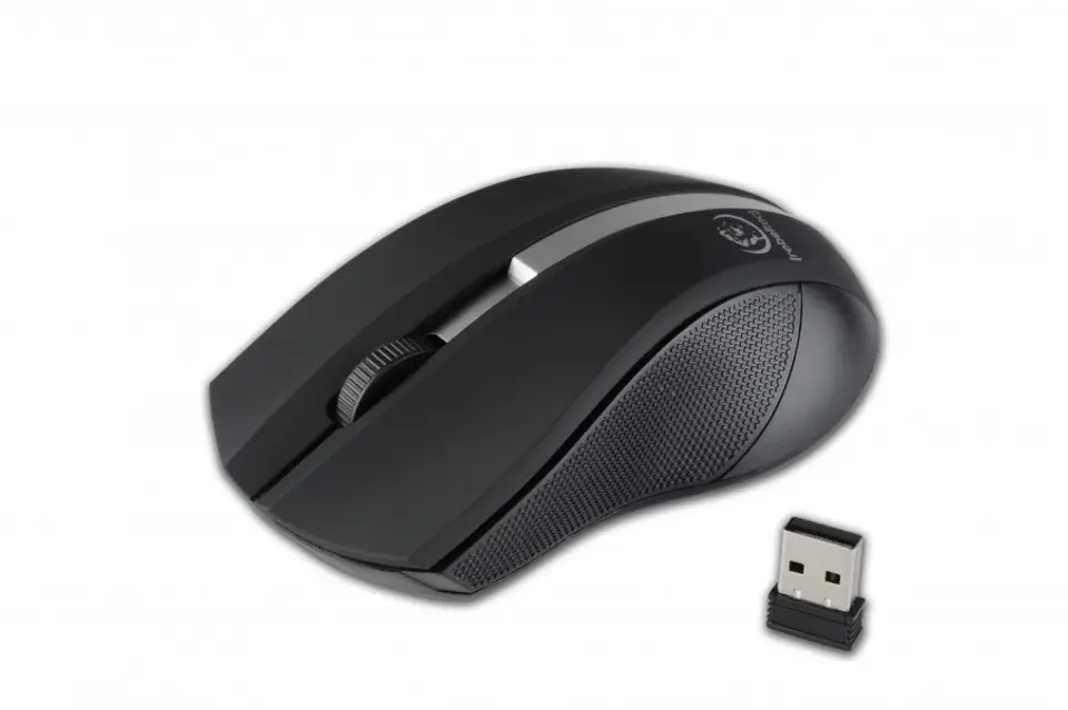 - Bezprzewodowa mysz optyczna, powierzchnia myszki gumowana zwiększa komfort pracy