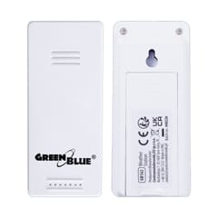 Specyfikacja- Producent: GreenBlue- Model: GB162- Kolor obudowy stacji: biały- Kolor czujnika bezprzewodowego: biały- Format wyświetlanej temperatury: °C / °F- Format czasu: 12 / 24 godziny- Wskaźnik niskiego poziomu baterii: tak- Wyświetlanie maksymalnych i minimalnych temperatur w pomieszczeniach i na zewnątrz: tak- Zakres pomiaru temperatury wewnętrznej: od -9,9°C (14,2°F) do ~ 50°C (122,0°F)- Zakres pomiaru temperatury zewnętrznej: od -40°C (-40°F) do ~ 70°C (158°F)- Zasilanie czujnika: 2 bateria x AAA /LR03 (brak w zestawie)- Zasilanie stacji pogodowej: 2 bateria x AAA /LR03 (brak w zestawie)- Częstotliwość transmisji nadajnika: 433,92 MHz- Zasięg transmisji: do 60 m (200 stóp)- Stopień ochrony nadajnika: IP44- Średnica całkowita: 85 mm- Średnica wyświetlacza: 63 mm- Grubość: 21 mm- Długość podstawki: 43 mm- Wymiary czujnika: 92 x 40 x 24 mm
