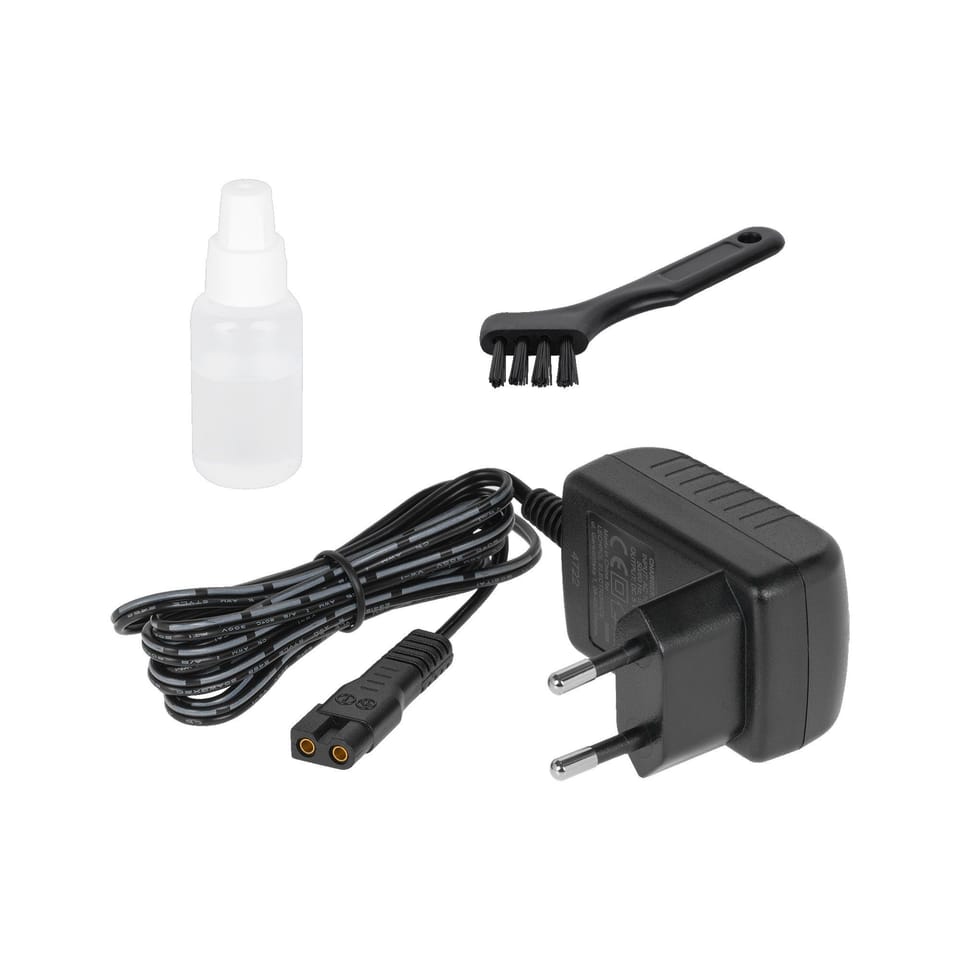 W zestawie: ładowarka sieciowa, stacja ładująca, nożyk 44 mm, nożyk 33 mm, precyzyjny trymer, trymer do nosa, 5 nasadek grzebieniowych, szczotka do czyszczenia, olejek do konserwacji, instrukcja obsługi.
