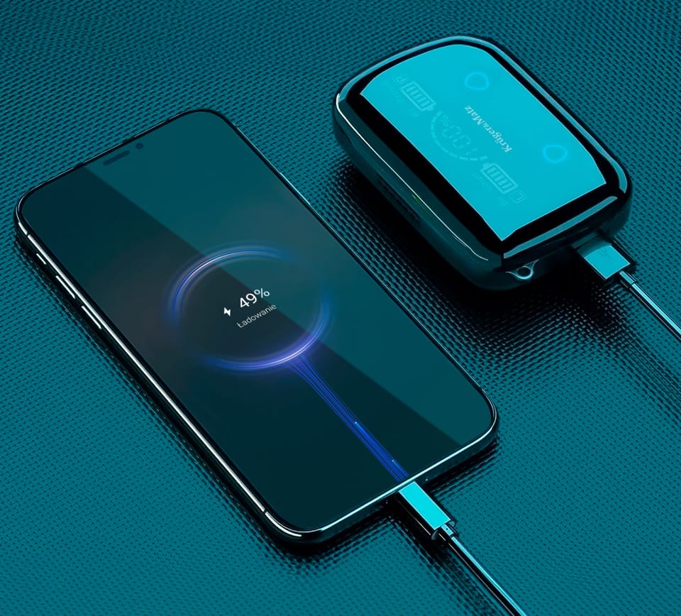 Etui, które otrzymujesz ze słuchawkami bezprzewodowymi M19, nie tylko umożliwia ich ładowanie i bezpieczne przechowywanie. Dzięki wbudowanej baterii 300 mAh staje się ono power bankiem, który pozwoli Ci doładować inne urządzenia.