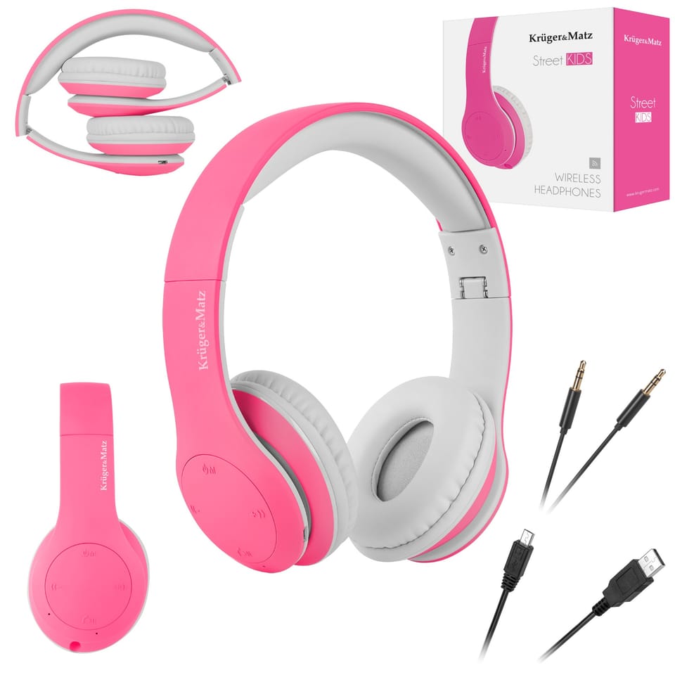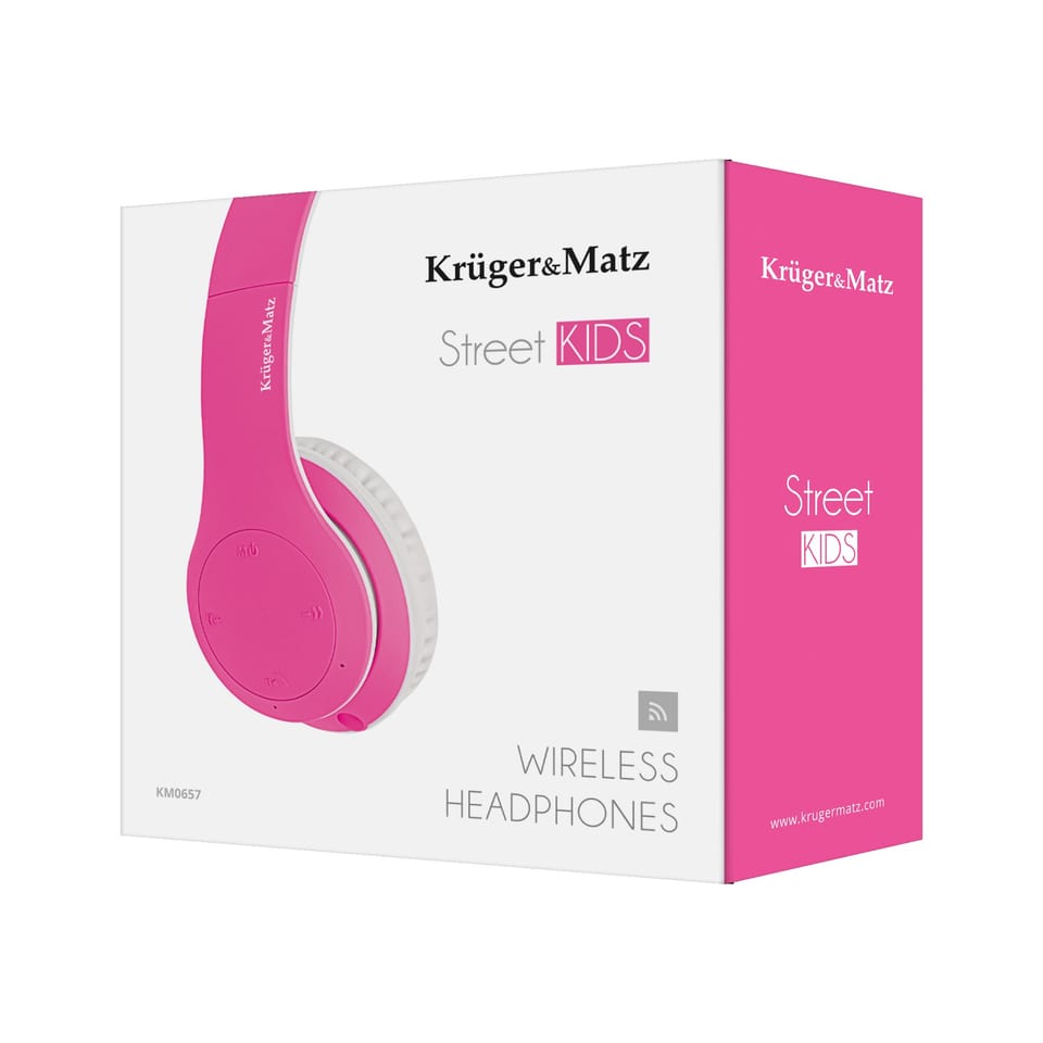 Bezprzewodowe słuchawki nauszne dla dzieci Kruger&Matz model Street Kids , kolor różowy
