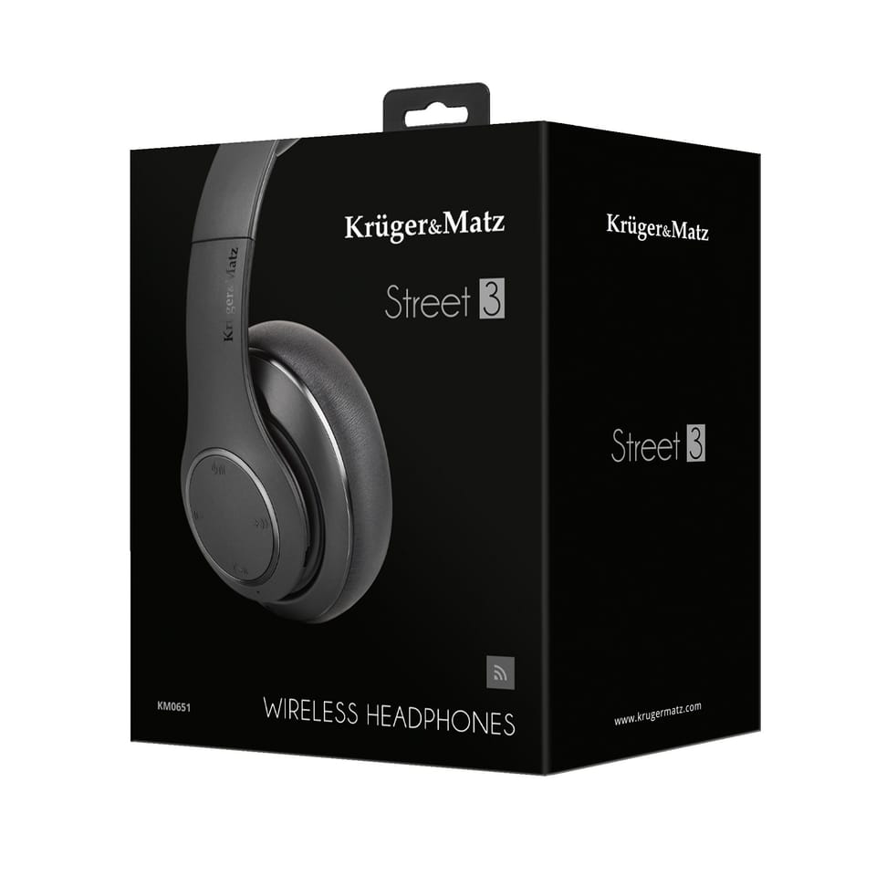 Bezprzewodowe słuchawki nauszne Kruger&Matz model Street 3 Wireless, kolor czarny