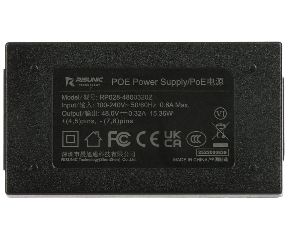 | Zasilanie: | 48 V DC / 0.32 A - Passive PoE (zasilacz w komplecie), PoE (802.3af) |