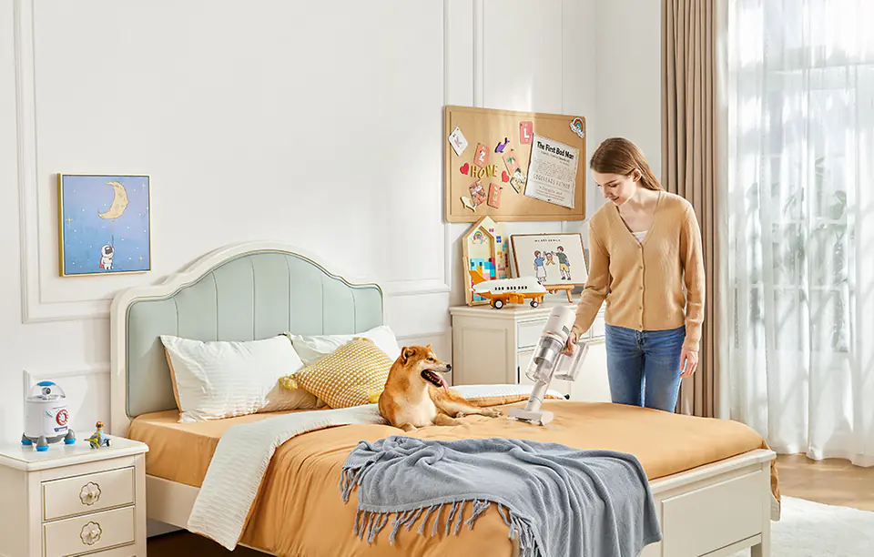 Jeśli mieszka z Tobą ukochane zwierzę, z pewnością wiesz, jak trudno usunąć sierść z kanapy, czy dywanu. Aby ułatwić Ci życie, do zestawu dołączyliśmy specjalną, elektryczną mini szczotkę, z którą sprzątanie tego typu zanieczyszczeń to pestka! Nie marnuj swojego cennego czasu i usuń sierść w mgnieniu oka z Dreame!