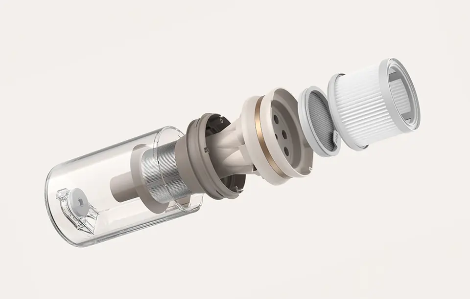 Ogromną zaletą odkurzacza Dreame U20 jest jego składana konstrukcja. Zdejmowany pojemnik na kurz, części filtra, czy głowa uniwersalnej szczotki — wszystko to z łatwością utrzymasz w czystości. Poszczególne komponenty bez przeszkód umyjesz pod bieżącą wodą, zachowując doskonały stan odkurzacza na dłużej.