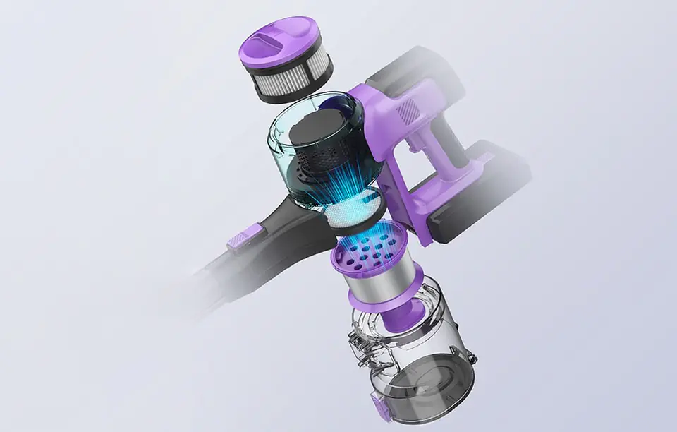 Odkurzacz oferuje siłę ssania na poziomie 26000 Pa i wykorzystuje moc 350 W. To przekłada się na skuteczne czyszczenie. Co więcej, silnik bezszczotkowy wyróżnia się wydajną pracą i przedłuża żywotność urządzenia. Ponadto 6-stopniowy system filtracji skutecznie oddziela od powietrza zanieczyszczenia o wielkości 0.3 mikrona.