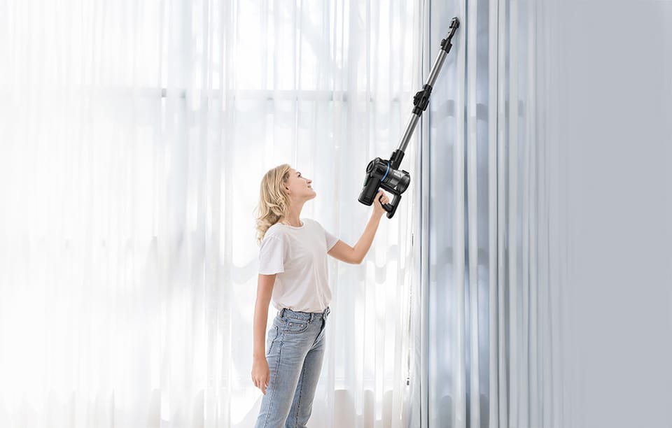 Dzięki zginanej rurze odkurzacz MOVA J10 umożliwia bezproblemowe dotarcie do najtrudniej dostępnych miejsc, w tym wąskich przestrzeni pod meblami. Możesz mieć pewność, że żaden zakamarek nie zostanie pominięty! Waga urządzenia wynosi zaledwie 1,07 kg, co dodatkowo ułatwia manewrowanie.