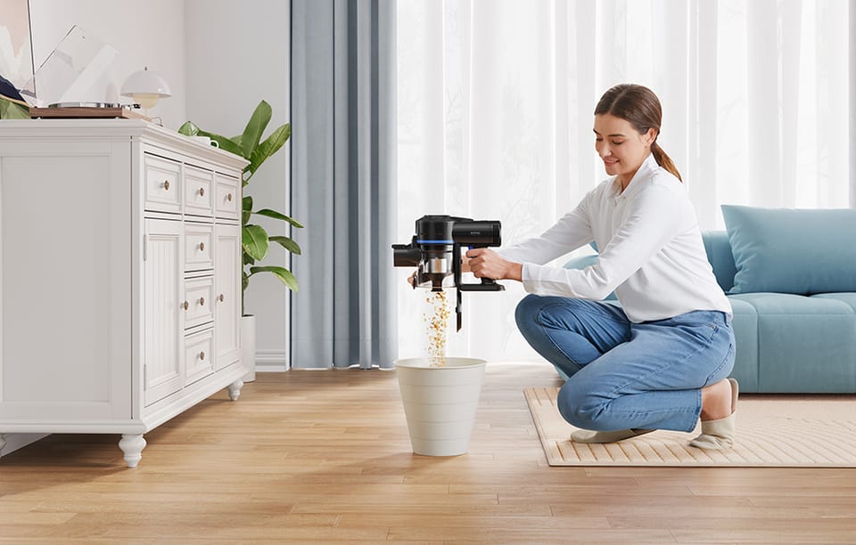 Możliwość opróżniania zbiornika o pojemności 500 ml przy pomocy dedykowanego przycisku minimalizuje kontakt z brudem, a także pozwala na szybkie i higieniczne usuwanie zebranych odpadów. Zastosowane rozwiązanie zapobiega także roznoszeniu kurzu. Ponadto poszczególne części MOVA J10 można zdemontować i umyć pod bieżącą wodą, co ułatwia utrzymanie odkurzacza w czystości i zapewnia długotrwałą efektywność jego działania.