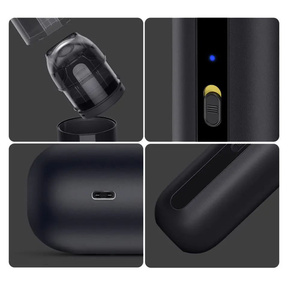 Odkurzacz Baseus został wyposażony w akumulator o pojemności 6000 mAh, co przekłada się na około 18 min pracy na jednym naładowaniu. Kiedy zajdzie taka potrzeba, A2 naładujesz za pomocą kabla USB–C (w zestawie). Wystarczy około 3.5 godz., aby był znów gotowy do pracy.