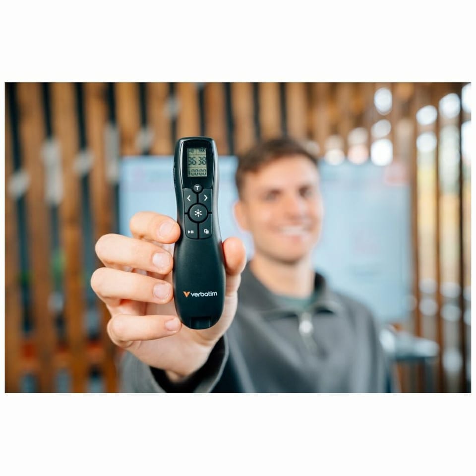 Bezprzewodowy prezenter Verbatim Keynote z wyświetlaczem LCD – pełna kontrola nad prezentacjąSpecyfikacja techniczna: