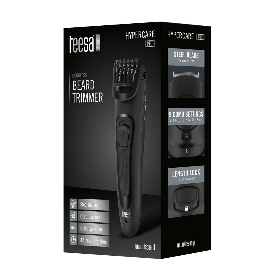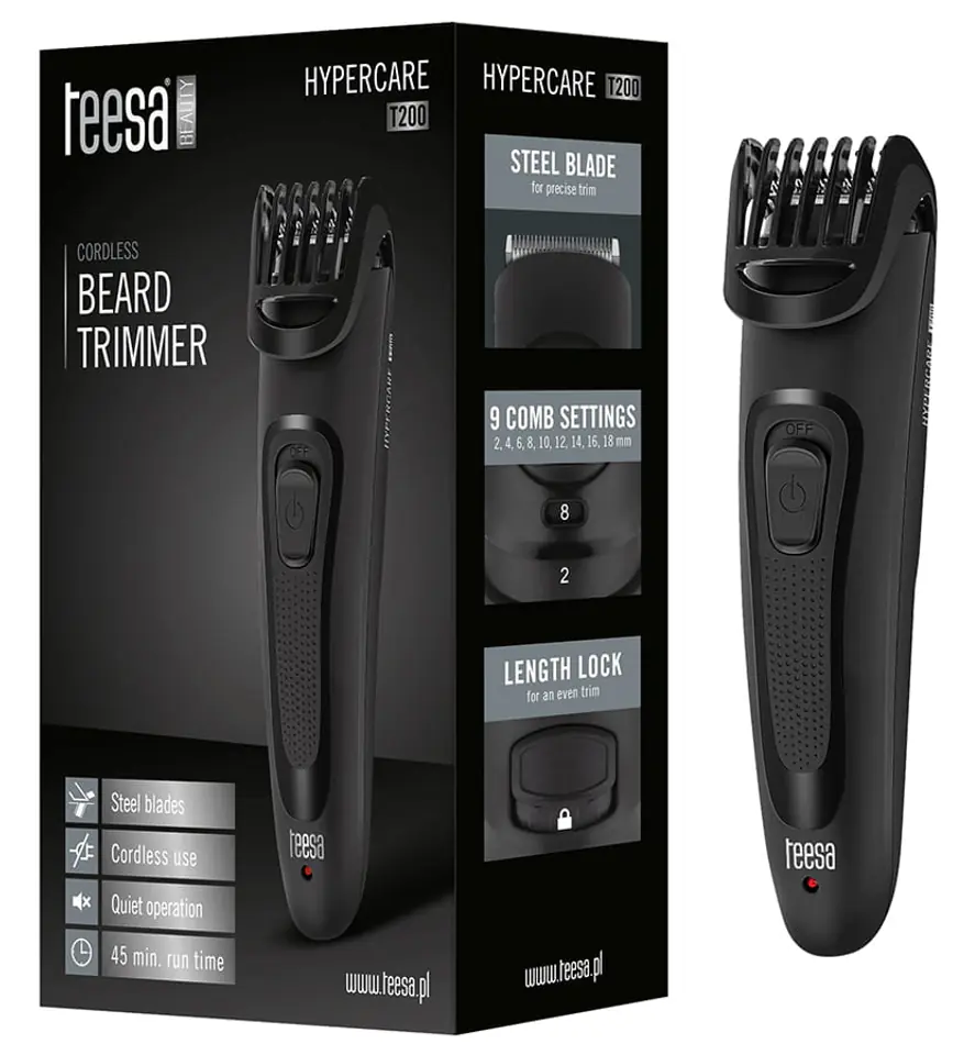 Teesa HYPERCARE T200 to wysokiej jakości trymer, który pozwoli Ci w prosty sposób utrzymać nienaganny wygląd brody. Dzięki temu urządzeniu stworzysz własny, unikalny styl, który sprawi, że zawsze będziesz czuł się świetnie!