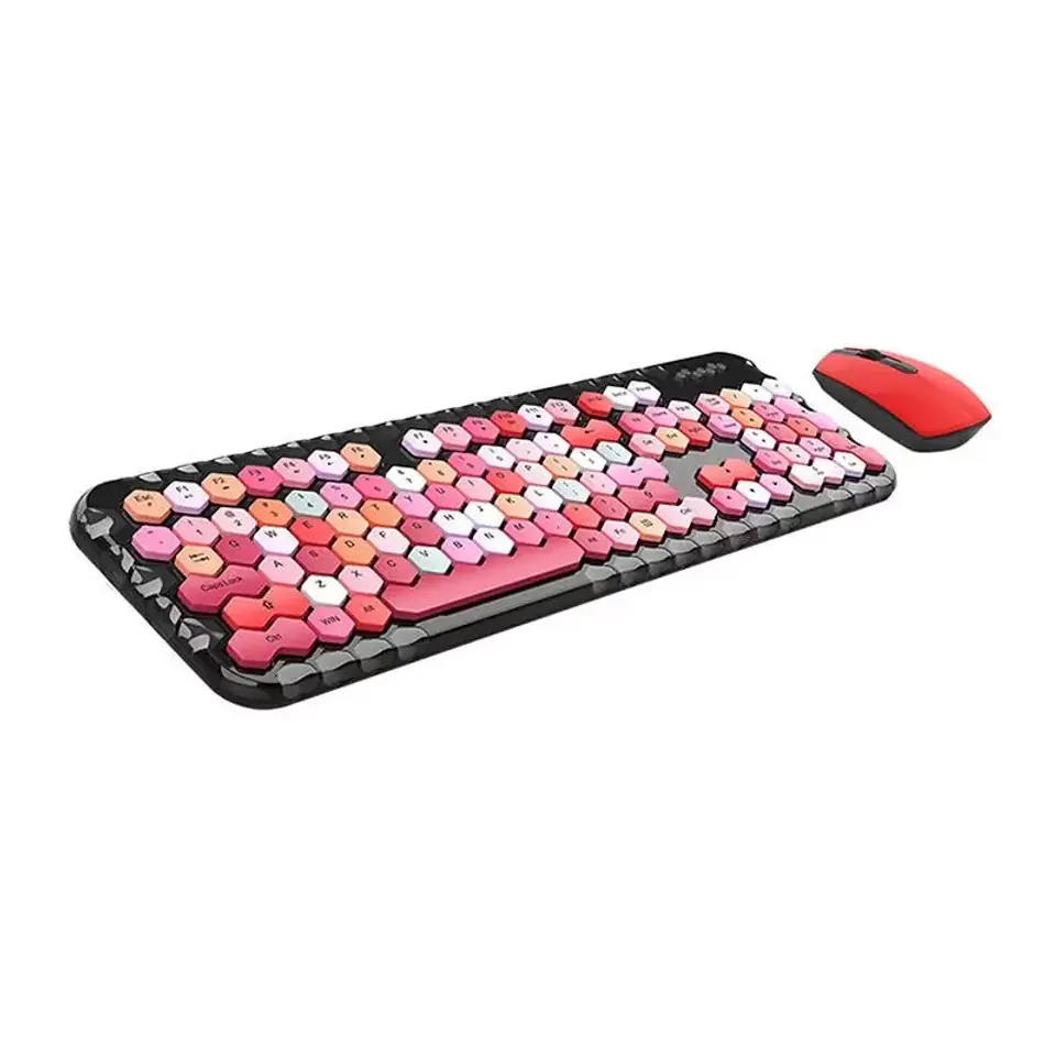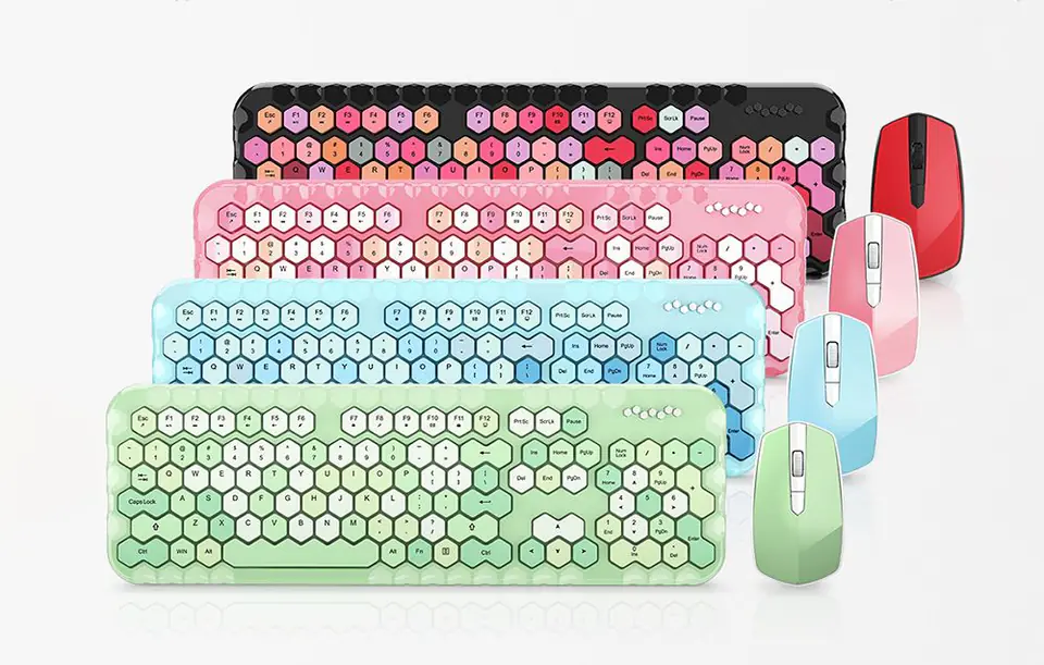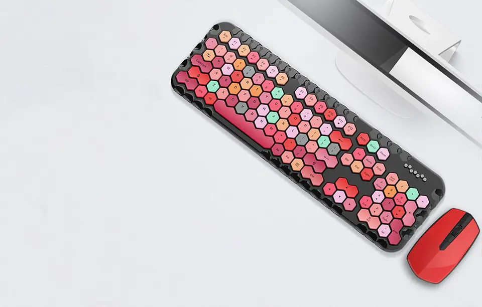MOFII Honey Plus zachwyca swoim kolorem i oryginalnym designem. Klawisze klawiatury kształtem przypominają plaster miodu, co nadaje jej oryginalny, nietuzinkowy charakter. Zestaw występuje w kilku wariantach kolorystycznych, dzięki czemu każdy znajdzie coś dla siebie. Atutem są również 3 poziomy trybu oszczędzania energii oraz szeroka kompatybilność — klawiatura i mysz współpracują z systemem Windows w wersji 2000, XP, ME, VISTA, 7 / 8 / 10.