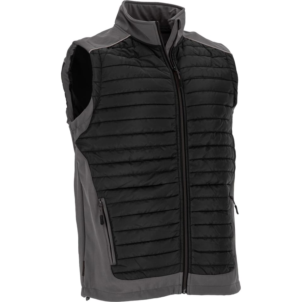 MATERIAŁ: Powłoka: 100% poliester, 70 g/m2 oraz tkanina typu soft-shell, 96% poliester, 4% elastan, 310g/ m2. Ocieplina: 120g/m2. Podszewka: tafta, 50g/m2 oraz micropolar 160g/m2. Wstawki z 3- warstwowej tkaniny soft-shell z membraną TPU, wodoodpornej (8000mm), oddychającej (3000g/m2/24h), gwarantującej wysoki komfort użytkowania. 3 kieszenie zamykane na suwak (2 zewnętrzne i 1 wewnętrzna). Zamek błyskawiczny. Osłona suwaka. Regulacja szerokości dołu kamizelki za pomocą specjalnego ściągacza. NORMA: EN ISO 13688