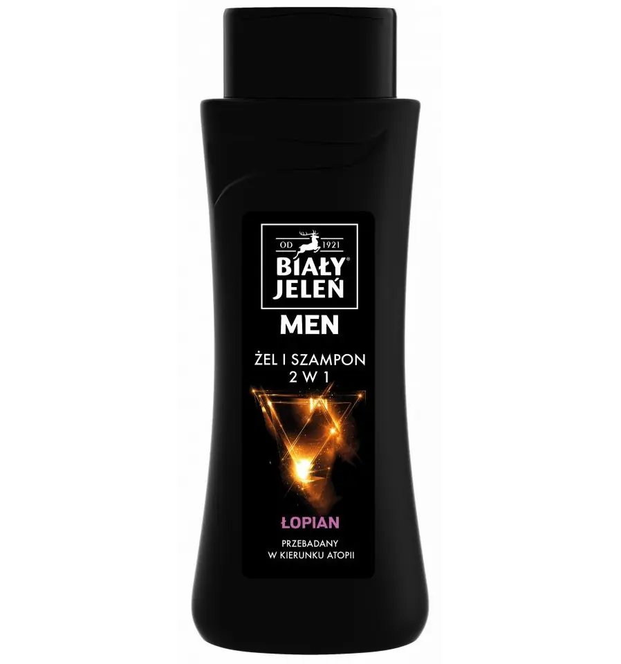 Hipoalergiczny żel & szampon Biały Jeleń 2 w 1 for Men z łopianem i proteinami pszenicznymi oczyszcza, wzmacnia i odżywia skórę oraz przywraca witalność włosom. Przeznaczony jest dla każdego rodzaju skóry oraz do włosów normalnych i przetłuszczających się.