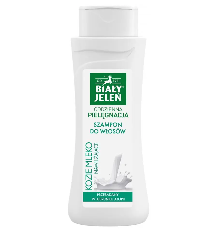 Szampon do włosów BIAŁY JELEŃ hipoalergiczny - kozie mleko został opracowany specjalnie dla osób z dolegliwo- ściami alergicznymi oraz problemami charakterystycznymi dla wrażliwej skóry głowy. Przeznaczony jest dla włosów cienkich, matowych, zniszczonych zabiegami fryzjerskimi. Delikatna formuła oparta na łagodnych środkach myjących skutecznie oczyszcza włosy. Szampon zapewnia wyjątkowe nawilżenie, odżywienie, ułatwia rozczesywanie, minima- lizuje efekt puszenia włosów. Substancje pielęgnujące: • ekstrakt z koziego mleka - intensywnie nawilża, sprawia, że włosy są miękkie, elastyczne i łatwo się rozczesują • pantenol - naturalny prekursor witaminy B5 - wnika w strukturę włosów, efektywnie je wygładzając, dzięki czemu stają się one mocniejsze i pełne blasku, ułatwia rozczesywanie i zapobiega rozdwajaniu końcówek • proteiny keratyny - wypełniają zniszczone fragmenty włosów, odbudowując ich strukturę • proteiny pszeniczne - działają antystatycznie, minimalizują elektryzowanie się i efekt puszenia włosów przy zachowaniu ich objętości Nie zawiera: SLES-u, silikonów, alergenów zapachowych, sztucznych barwników, alkoholu i Cocamide DEA. Przebadano dermatologicznie wśród osób o skórze wrażliwej ze skłonnością do atopii. Posiada pozytywną ocenę dyplomowanej fryzjerki. Sposób użycia: nanieść szampon na wilgotne włosy, masować do momentu spienienia, następnie dokładnie spłukać wodą. Najlepsze rezultaty uzyskuje się przy regularnym stosowaniu razem z odżywką BIAŁY JELEŃ hipoalergiczny - kozie mleko.