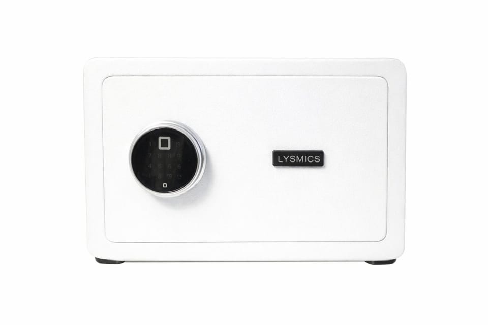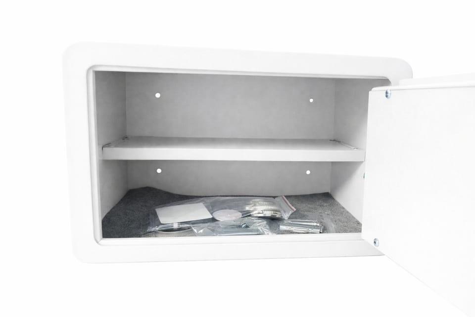 Biały sejf biurowy na kod i klucz odcisk palca