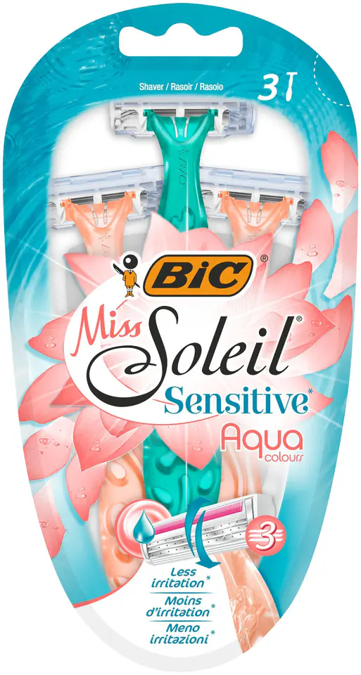 Bic Maszynka do golenia Miss Soleil 3 Sensitive Aqua Colours 1op.-3szt