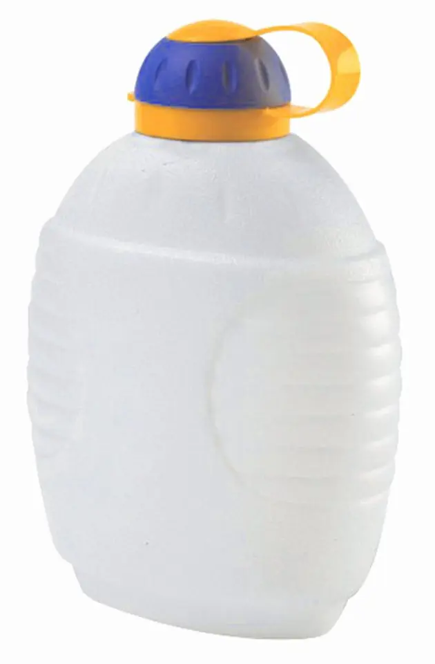Posiada korek zakręcany oraz otwierany od góry, umożliwiający wygodne picie.