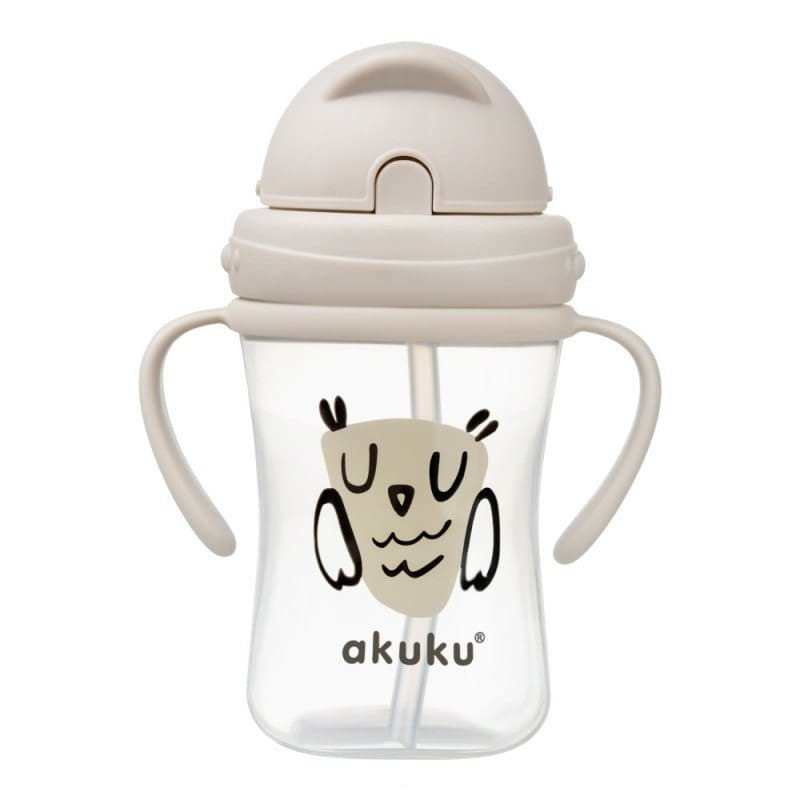Bidon z chowaną słomką, sowa Bidon ze słomką marki „akuku" sprawdzi się zarówno w domu, jak i w podróży czy na spacerze. Wykonany z bezpiecznych surowców, lekki i wytrzymały. Idealnie nadaje się do nauki picia. Łatwy w utrzymaniu czystości. Transparentny kolor umożliwia łatwe kontrolowanie zawartości. Specjalny ergonomiczny kształt zapewnia dużą wygodę w użytkowaniu. Kubek wyposażony jest w wygodne, szerokie uchwyty, które ułatwiają trzymanie go w malutkich rączkach. Instrukcja: produkt utrzymuj w czystości. Przed pierwszym i każdym kolejnym użyciem umyj kubek i jego elementy w ciepłej wodzie z delikatnym środkiem myjącym, dokładnie wypłucz ciepłą wodą. Polej wrzątkiem. Nie gotuj. Unikaj szorstkich, rysujących powierzchnię narzędzi. Po użyciu kubek, rurkę i nakrętkę oczyść z resztek napoju, wypłucz a następnie dokładnie umyj. Kubek można myć w zmywarce. Nie zaleca się mycia rurki w zmywarce, ponieważ detergenty/środki czyszczące mogą spowodować uszkodzenie produktu. Produkt nie do użytku w kuchenkach mikrofalowych. Twarda woda, soki owocowe lub herbatki mogą pozostawiać na rurce osad lub przebarwienia, co nie zmienia jej właściwości. Gęste płyny (np. zawiesiny z drobinami owoców) mogą zatkać rurkę. Produkt nie jest przeznaczony do podawania w nim gorących lub gazowanych płynów. Produktu nie należy sterylizować w sterylizatorach parowych. Produkt sprawdź przed każdym użyciem. W przypadku pierwszych oznak zniszczenia lub zużycia - wyrzuć. Produktu nie należy umieszczać w nagrzanym piekarniku ani ogrzewać na kuchence gazowej bądź elektrycznej. Dla bezpieczeństwa i zdrowia Twojego dziecka. Ostrzeżenie! Zawsze używać wyrobu pod nadzorem dorosłych. Ciągłe i przedłużone ssanie płynów może powodować próchnicę. Zawsze sprawdzać temperaturę pokarmu przed karmieniem. Słomka nie jest odpowiednia dla dzieci poniżej 6 miesiąca życia. Uwaga! Produkt nie jest zabawką. Wszystkie części produktu przechowuj w miejscu niedostępnym dla dziecka. Produkt całkowicie wolny od bisfenolu A (0% BPA). Pojemność bidonu 300 ml Przeznaczony dla dzieci 9m+
