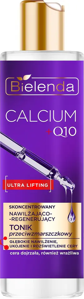 Sposób użycia: zwilż wacik tonikiem, nałóż na oczyszczoną skórę twarzy, szyi i dekoltu. Nie spłukuj. Stosuj codziennie rano i wieczorem lub w ciągu dnia jako zabieg odświeżający. Następnie nałóż krem i/ lub serum Bielenda CALCIUM + Q10.